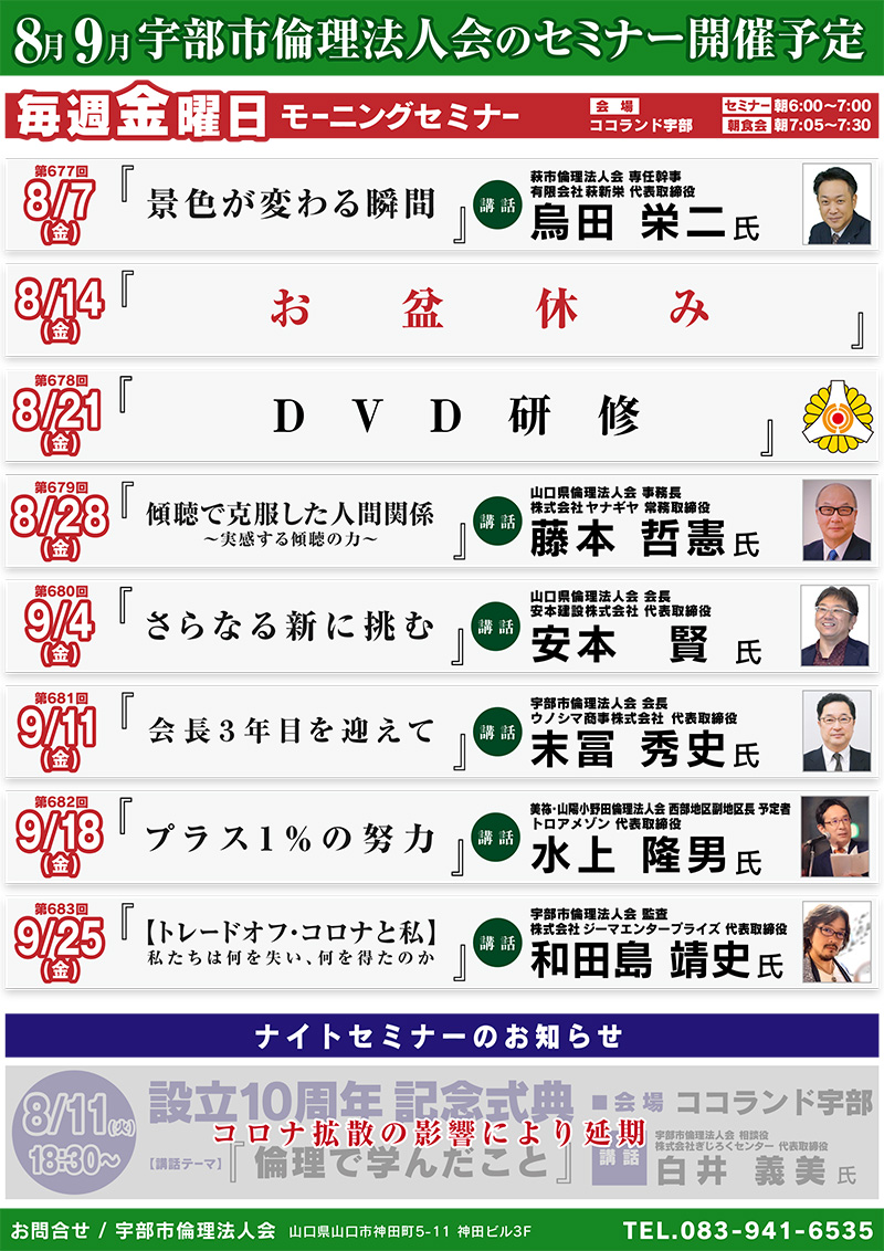 8月9月 宇部市倫理法人会モーニングセミナー開催予定