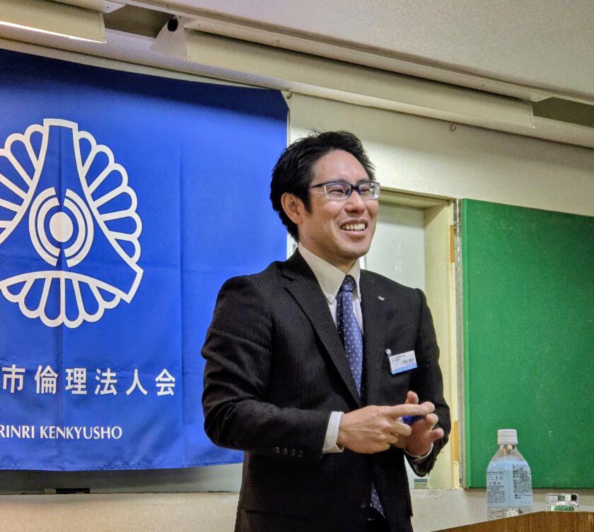 今朝のモーニングセミナー講師は、広島より、空手道真義館 館長の竹内大策氏にお越しいただきました。