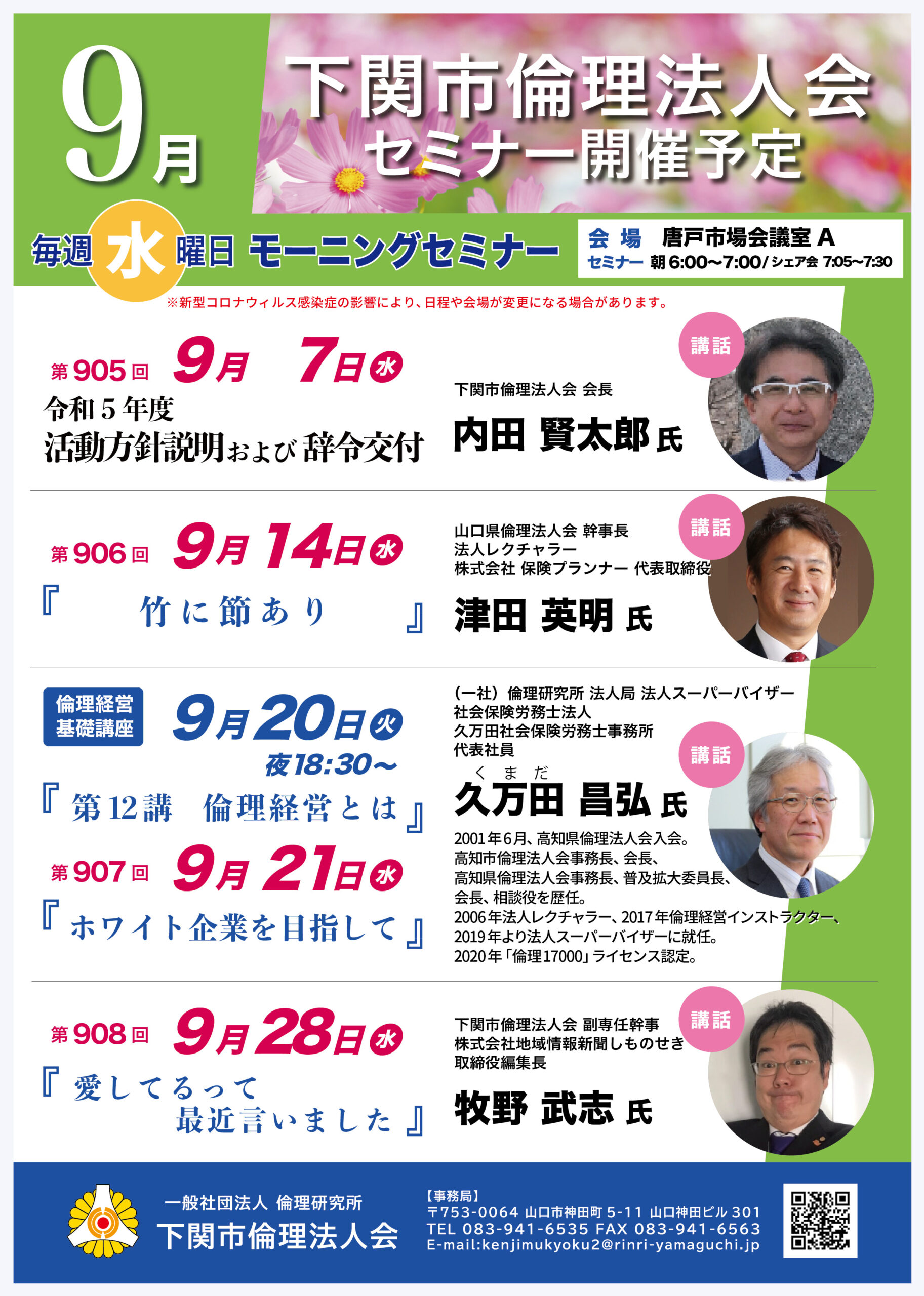 Mセミナー第908回 MS 講師: 牧野 武志氏(下関市倫理法人会 副専任幹事 / 株式会社地域情報新聞しものせき 取締役編集長)/テーマ:愛してるって最近言いました
