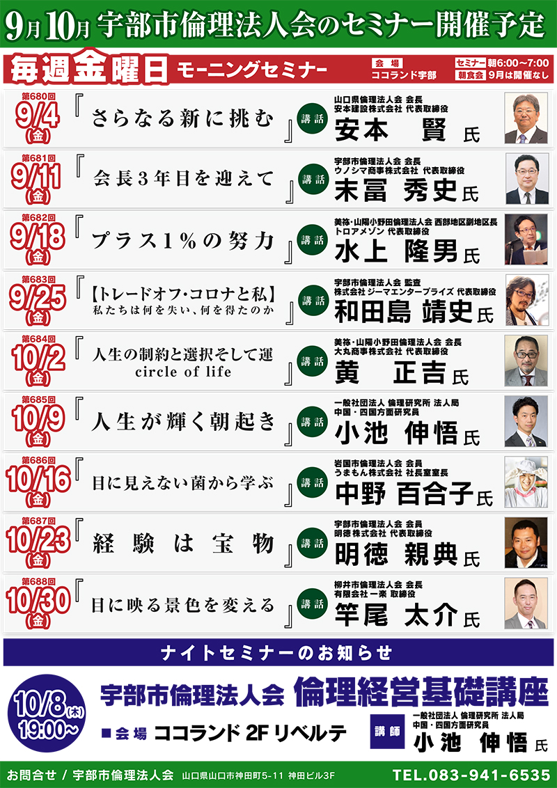 9月10月 宇部市倫理法人会モーニングセミナー開催予定