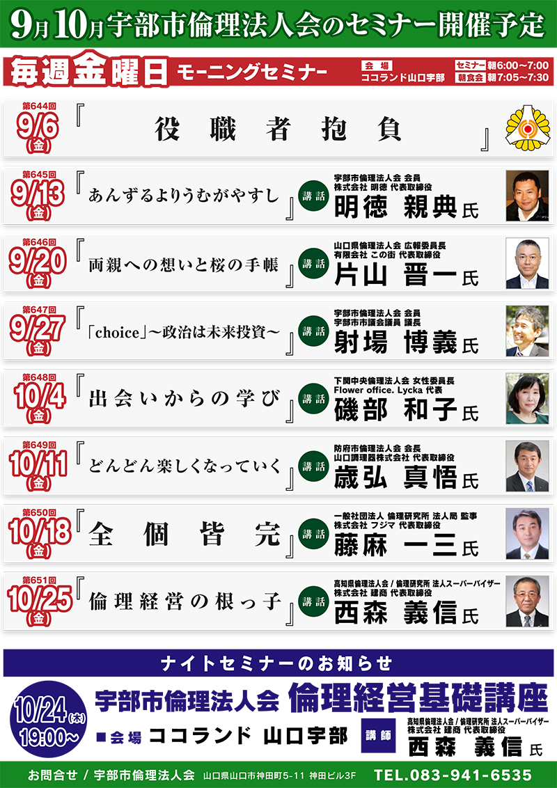 9月10月 宇部市倫理法人会モーニングセミナー開催予定