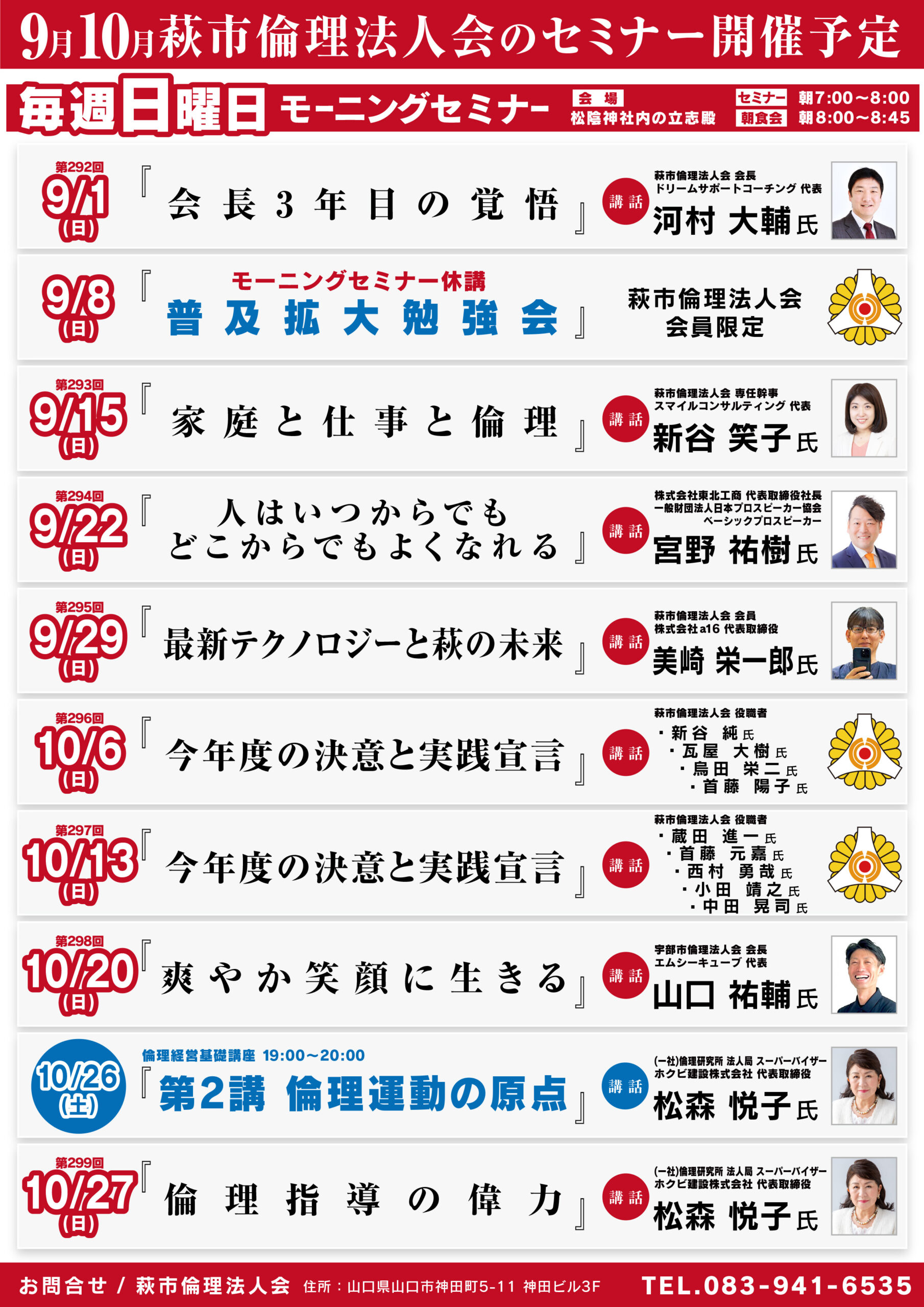 毎週日曜日、朝 7:00 〜 8:00 松陰神社 立志殿にて