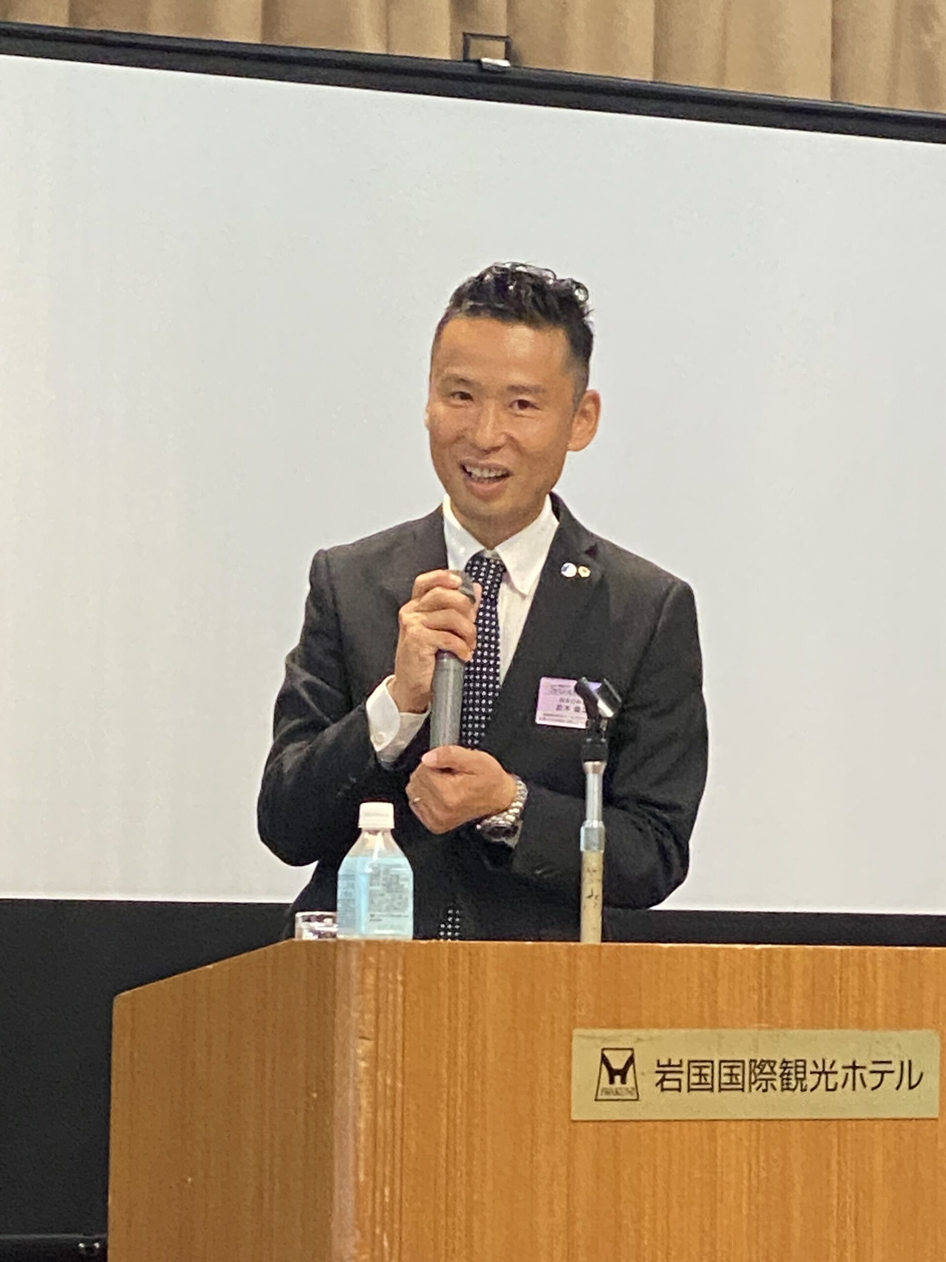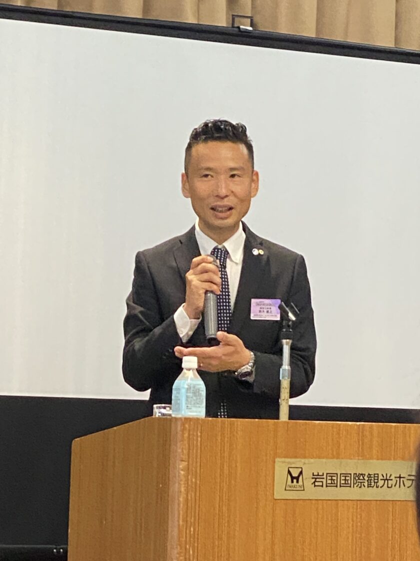 ↑↑ 安本賢 県キャリア委員長 会員スピーチ