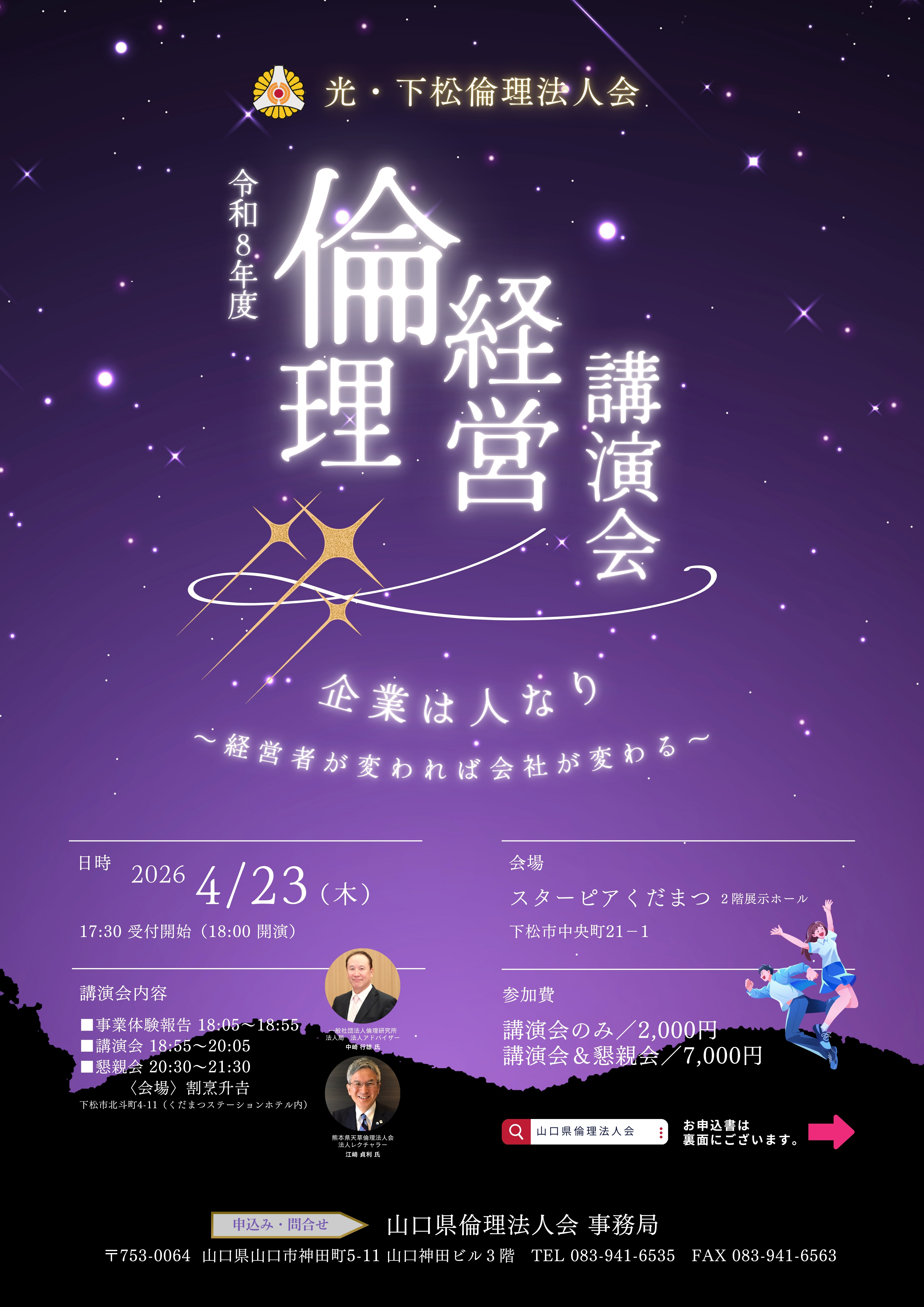 | お問合せ | 山口県倫理法人会 事務局 TEL:083-941-6535 FAX:083-941-6563 |