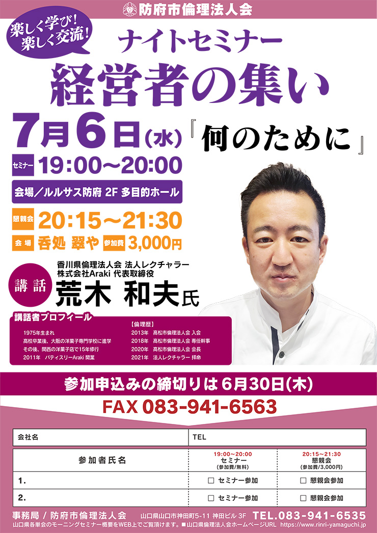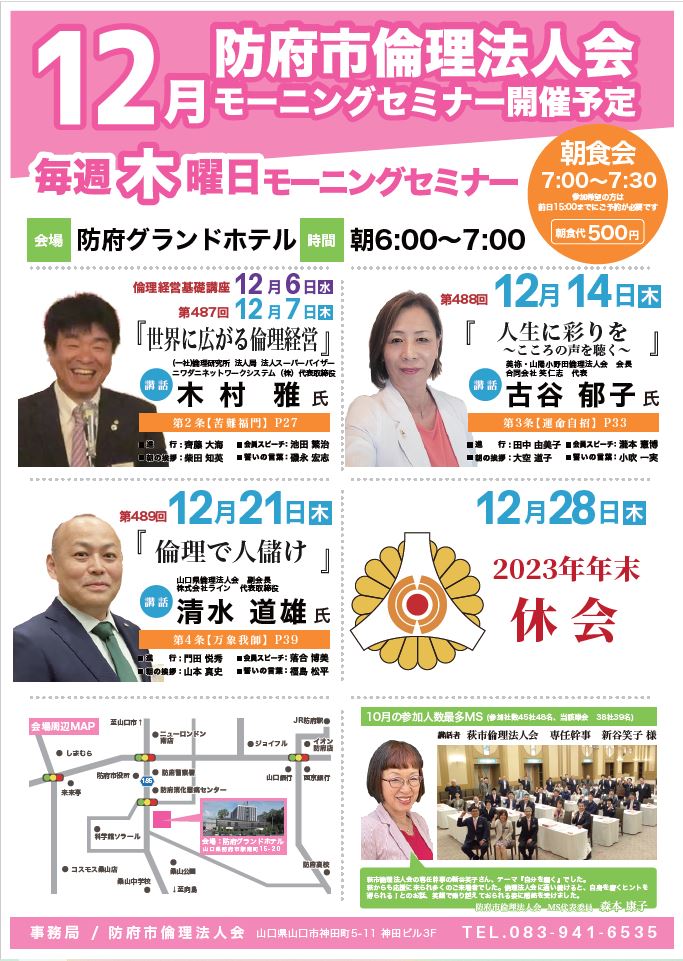 防府市倫理法人会のホームページでは、活動内容やスケジュールを公開しております。 https://www.rinri-yamaguchi.jp/branch-hofu/