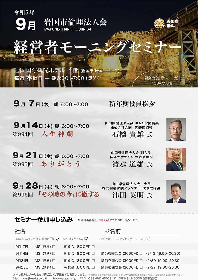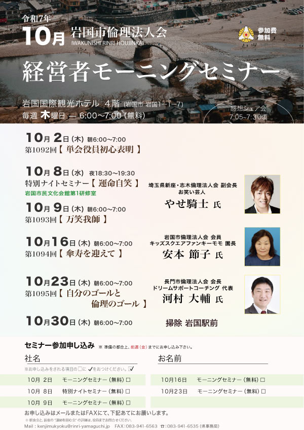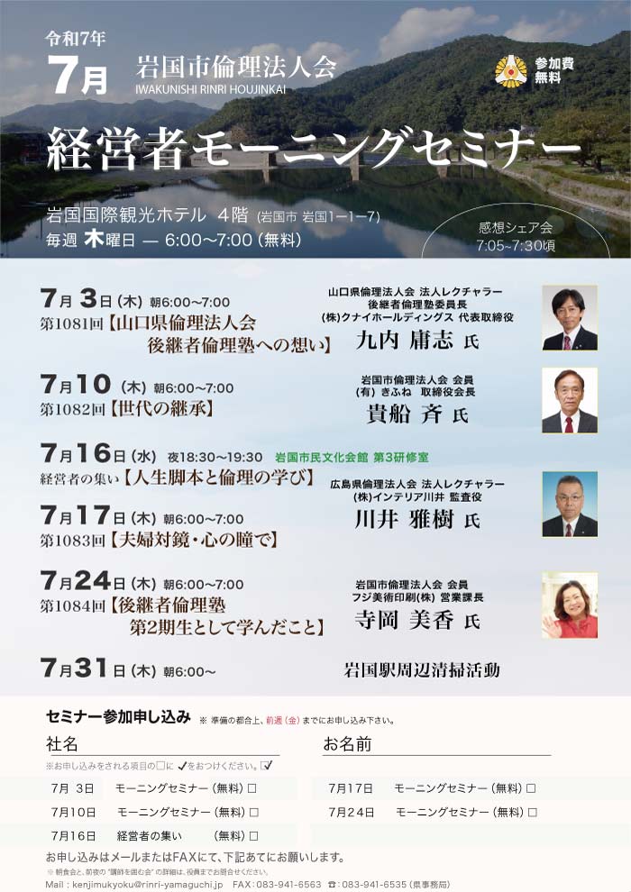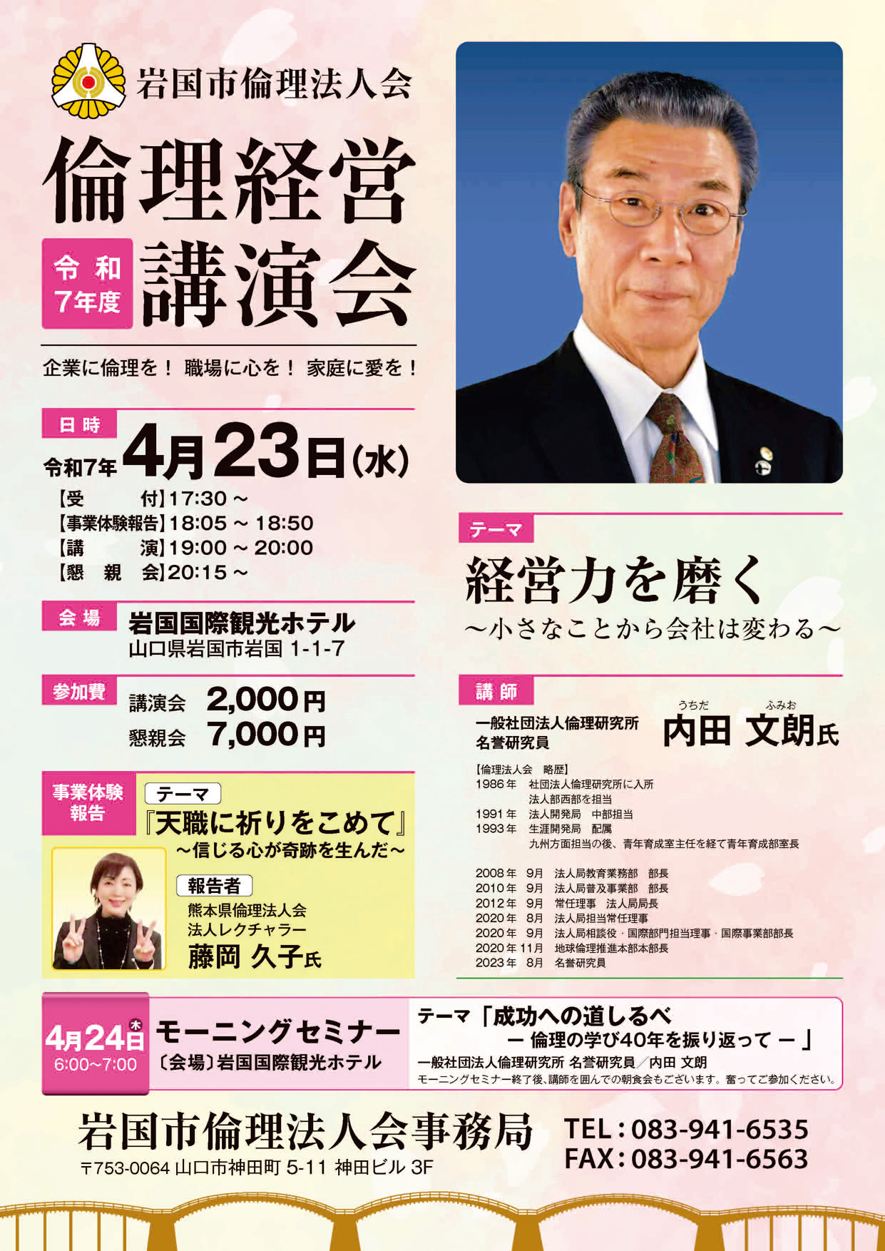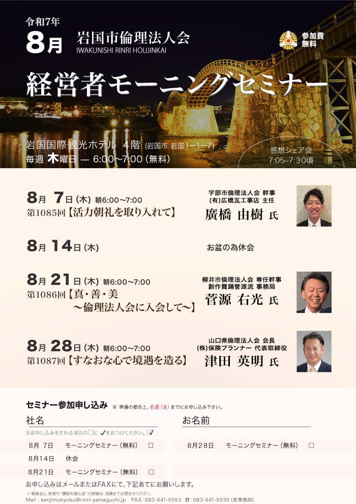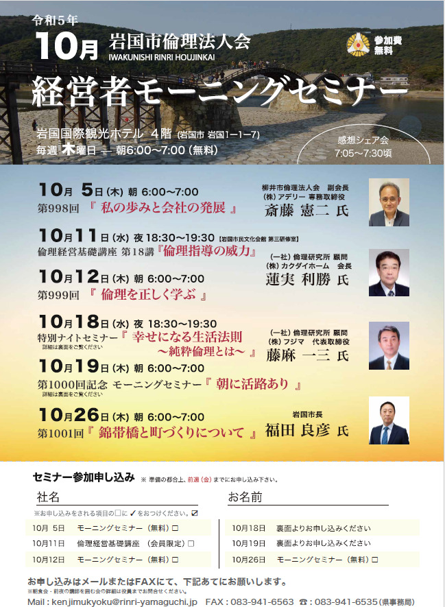 会員スピーチ 岩国市倫理法人会 監査 竹本 幸生