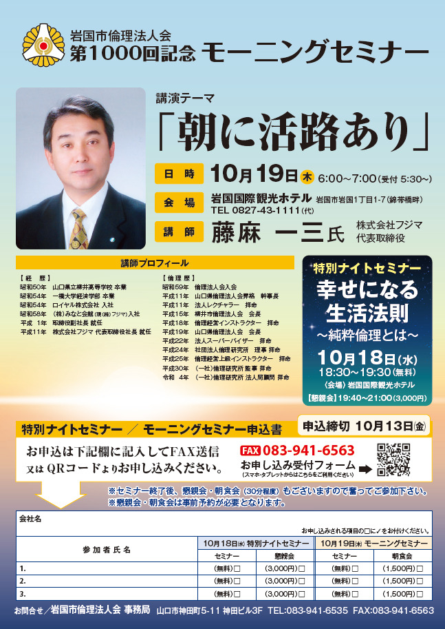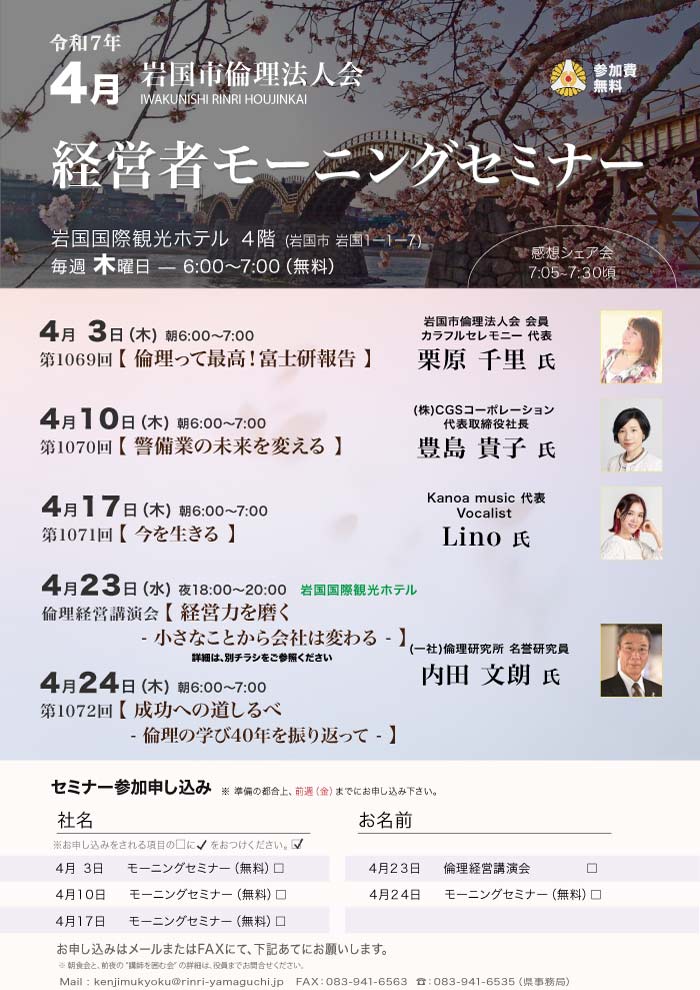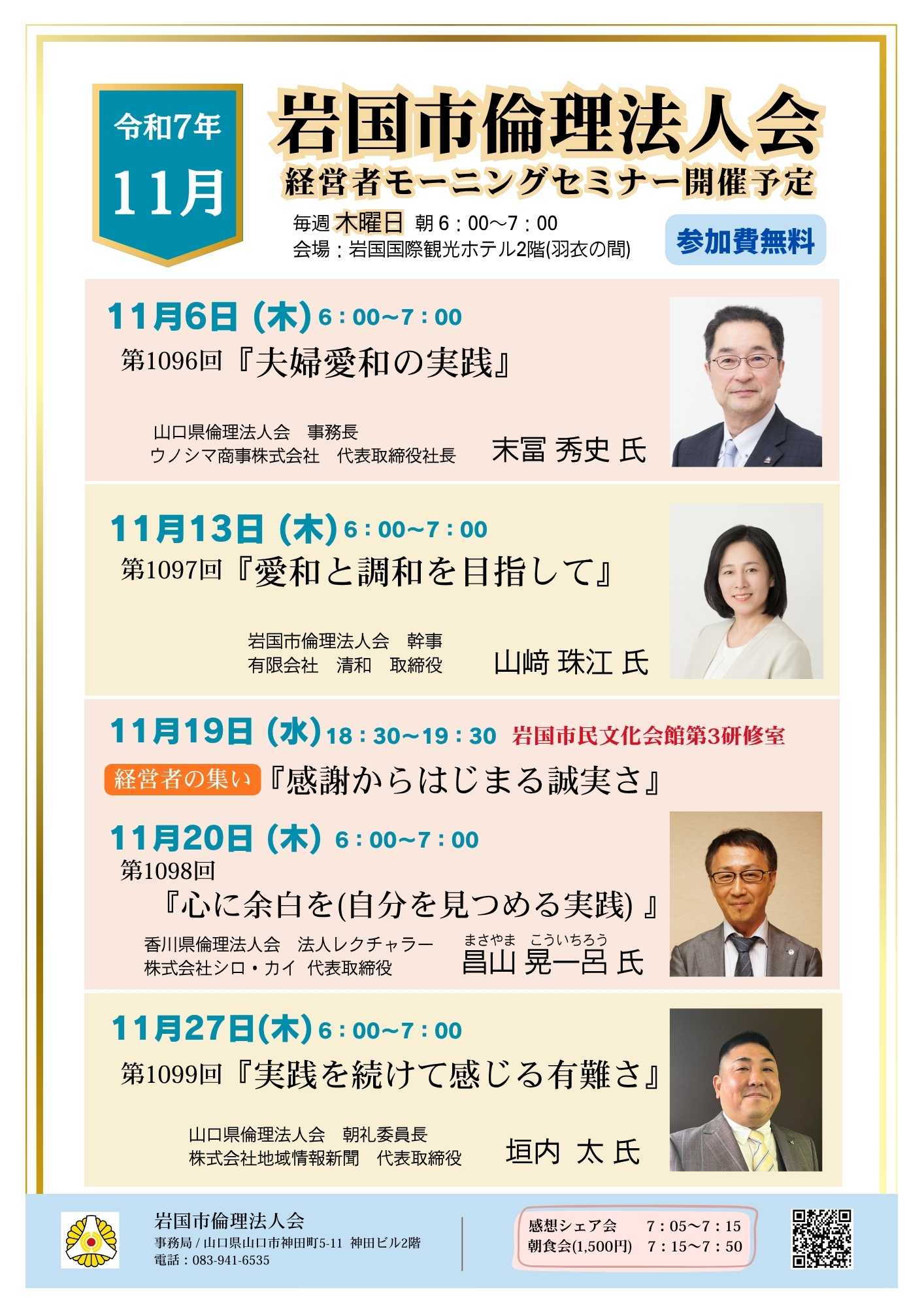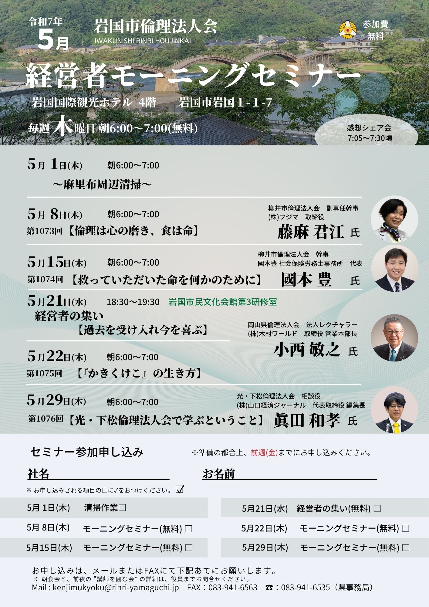 会員スピーチ 岩国市倫理法人会 監査 竹本 幸生