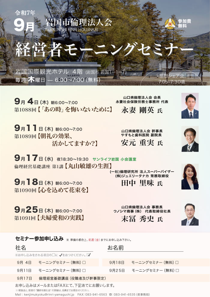 12月11日(木) 第1101回記念モーニングセミナーの講師は、一般社団法人倫理研究所 田形健一名誉研究員を