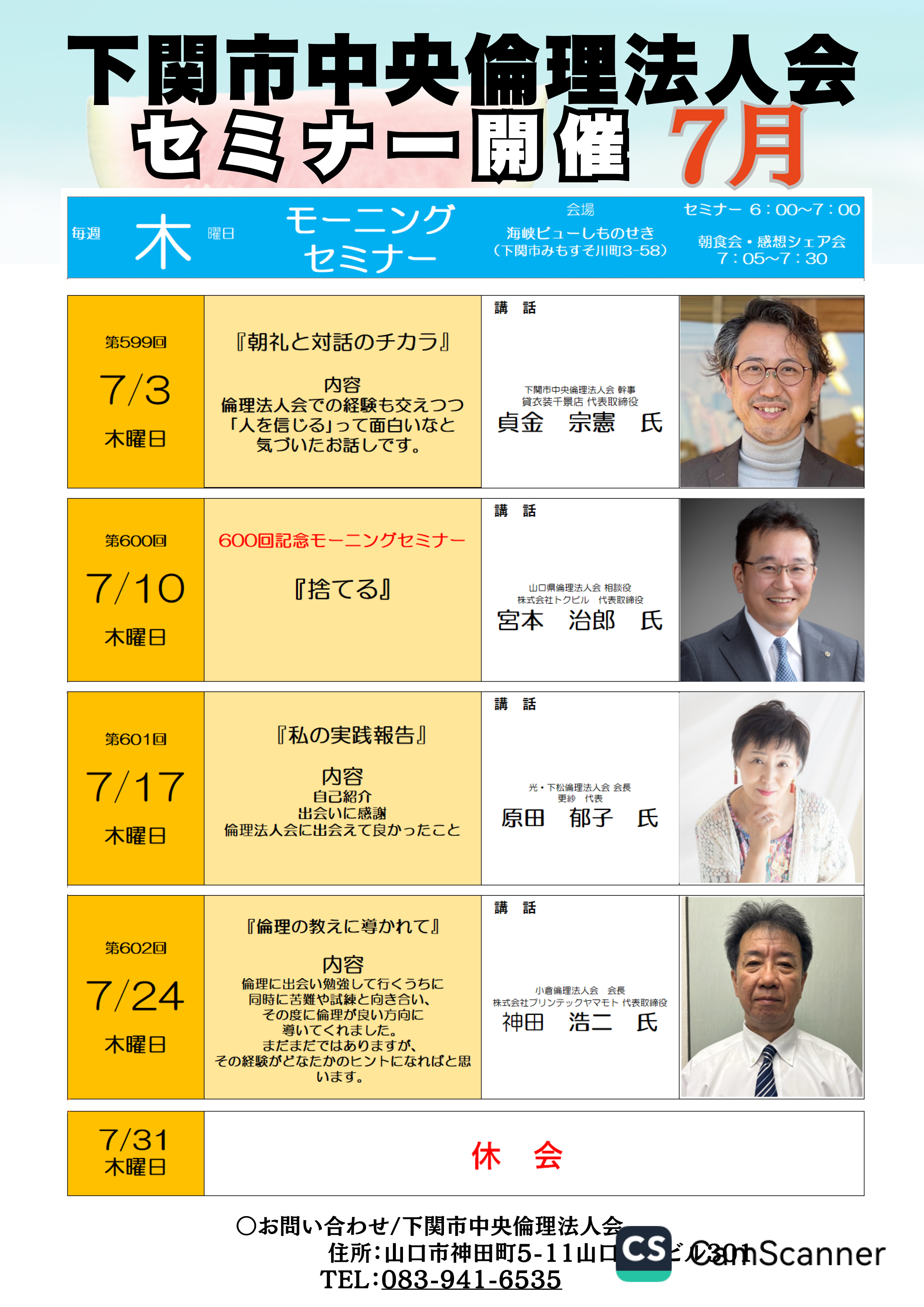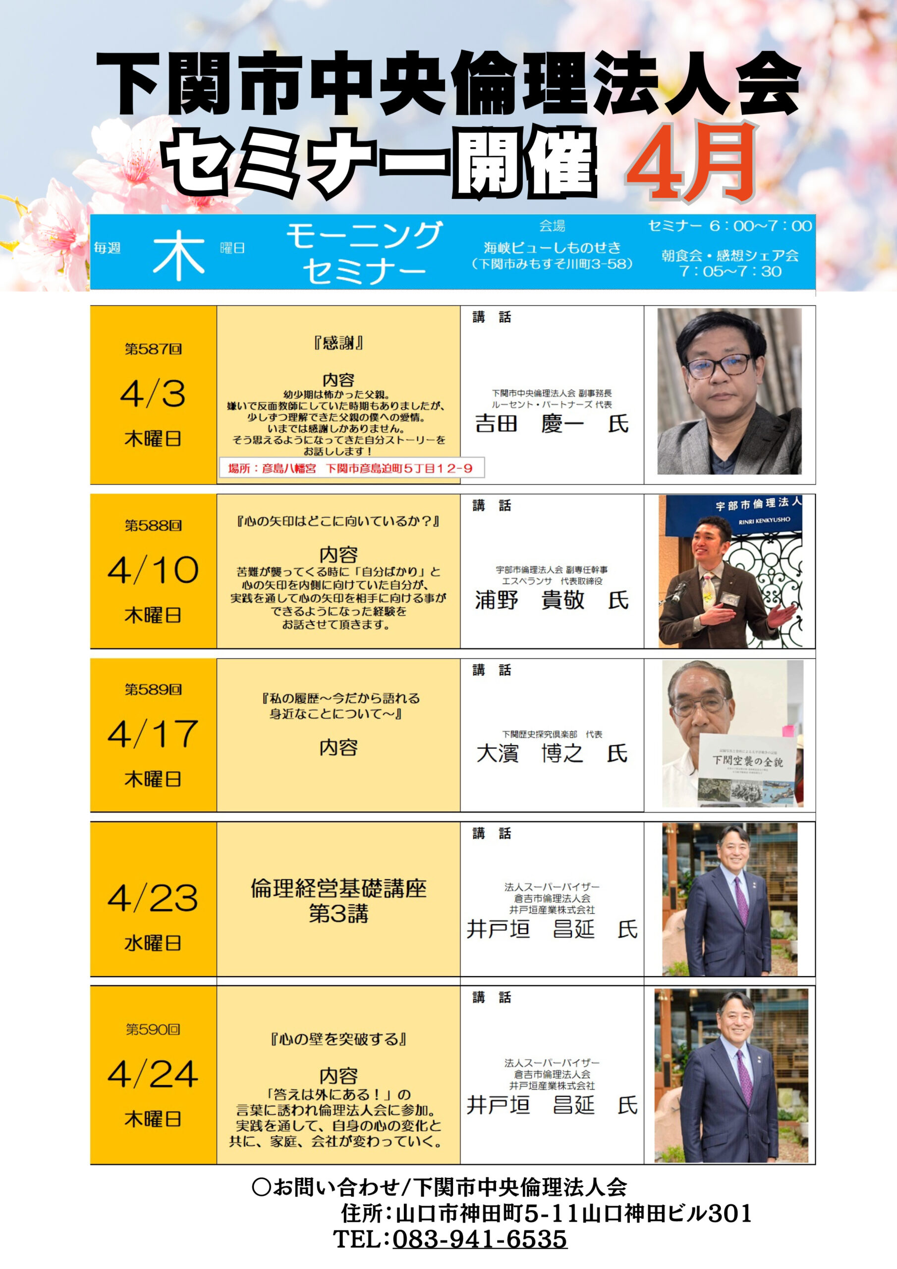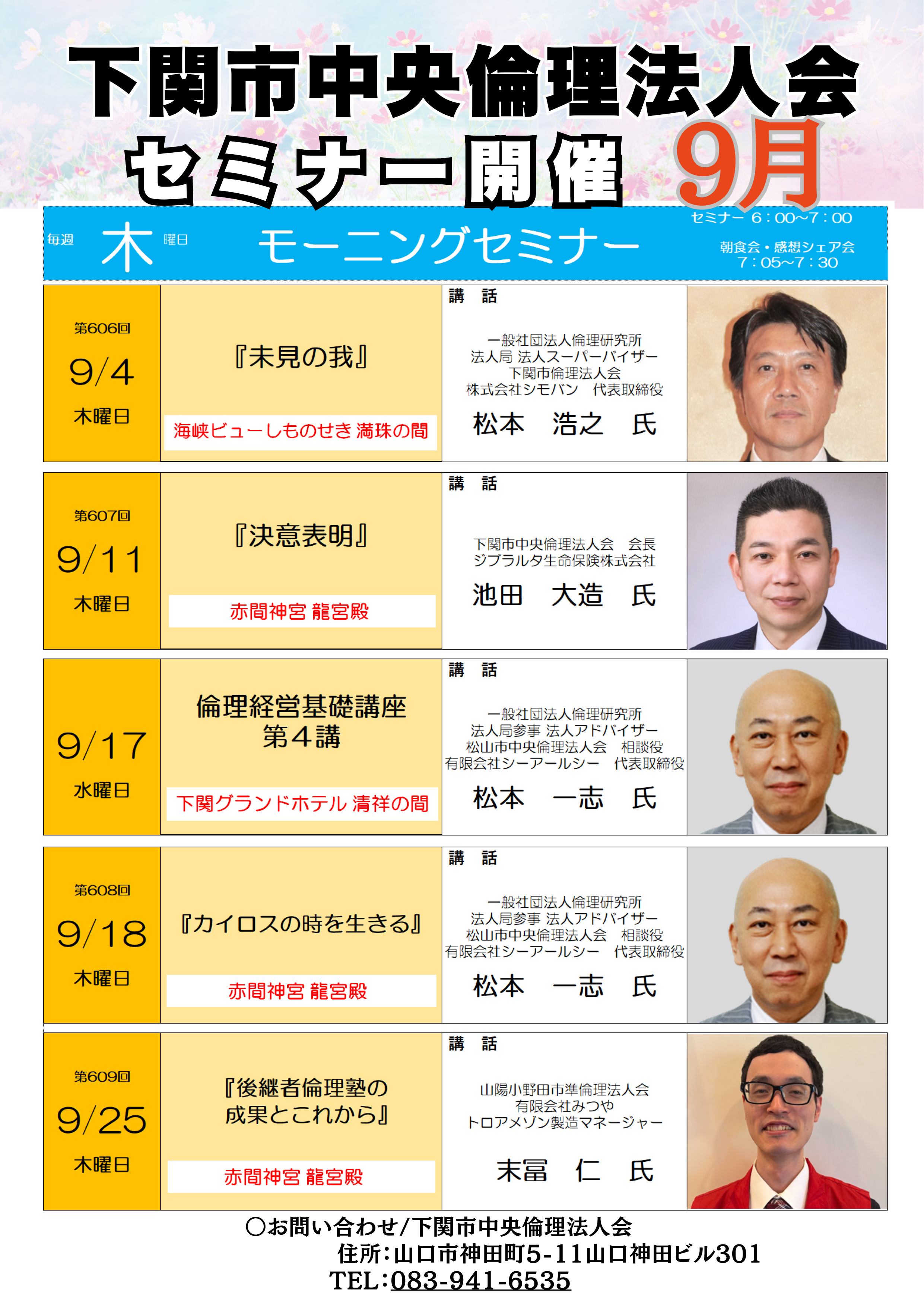 水上 隆男氏(山陽小野田市準倫理法人会会長有限会社みつや・トロアメゾン代表取締役)にご登壇していただく予定です。またのご参加をお待ちしております。