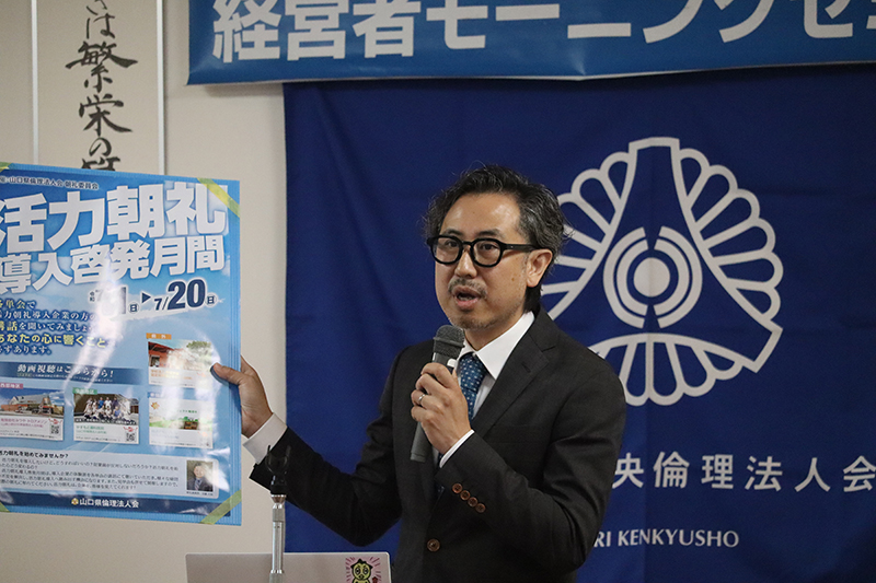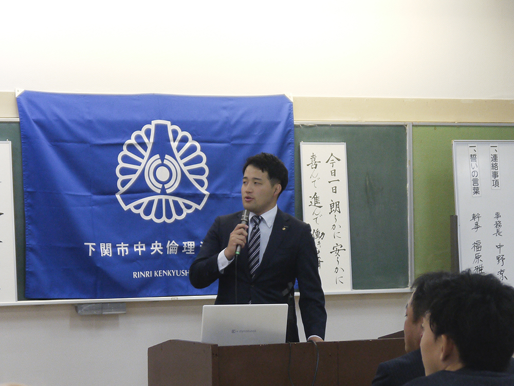 村谷 亮太氏(防府市倫理法人会 幹事株式会社 原工務店 専務取締役)にご講話頂きました。