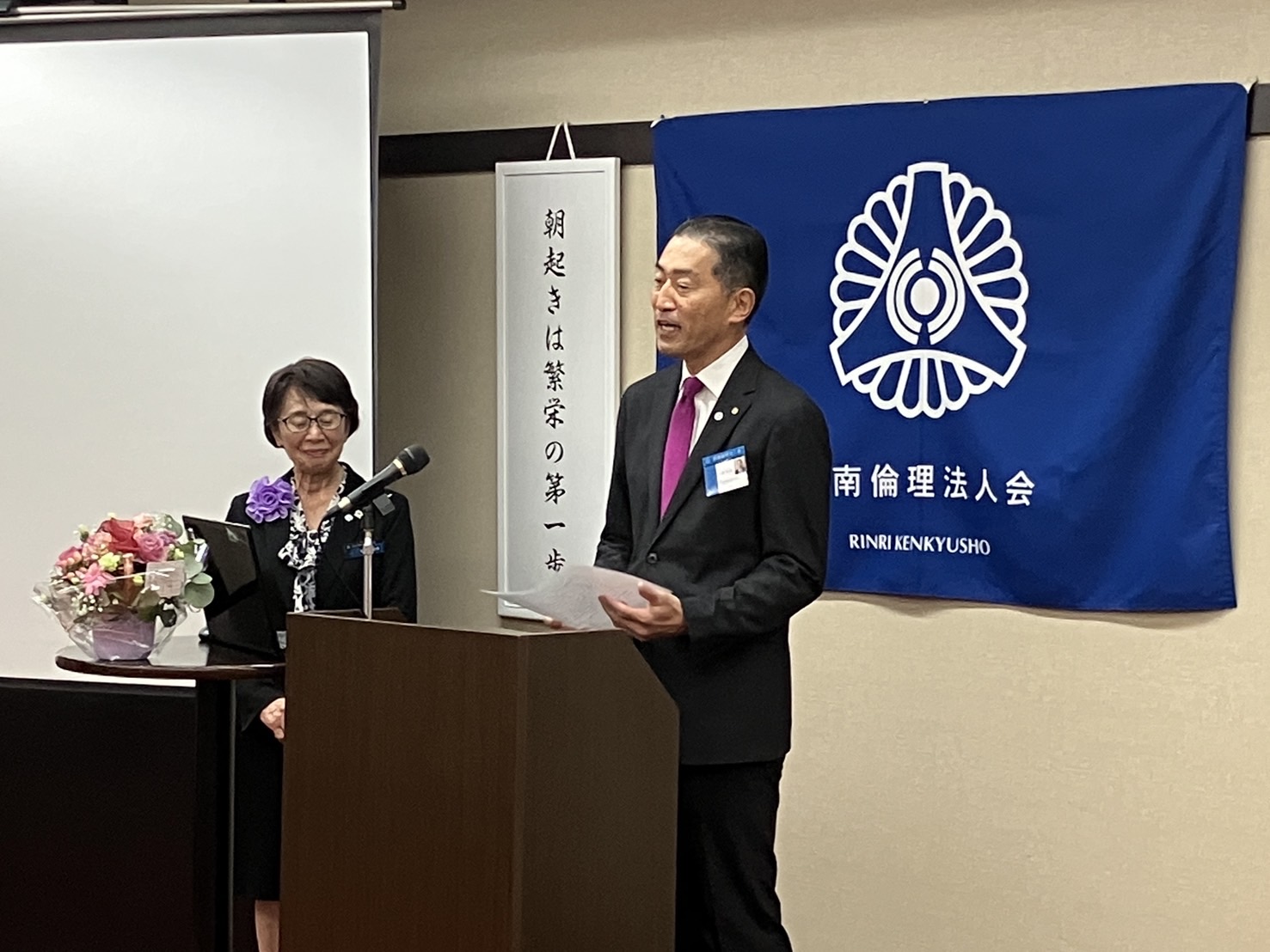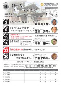 企業に倫理を、職場に心を、家庭に愛を、このスローガンを元に、経営者が純粋倫理を