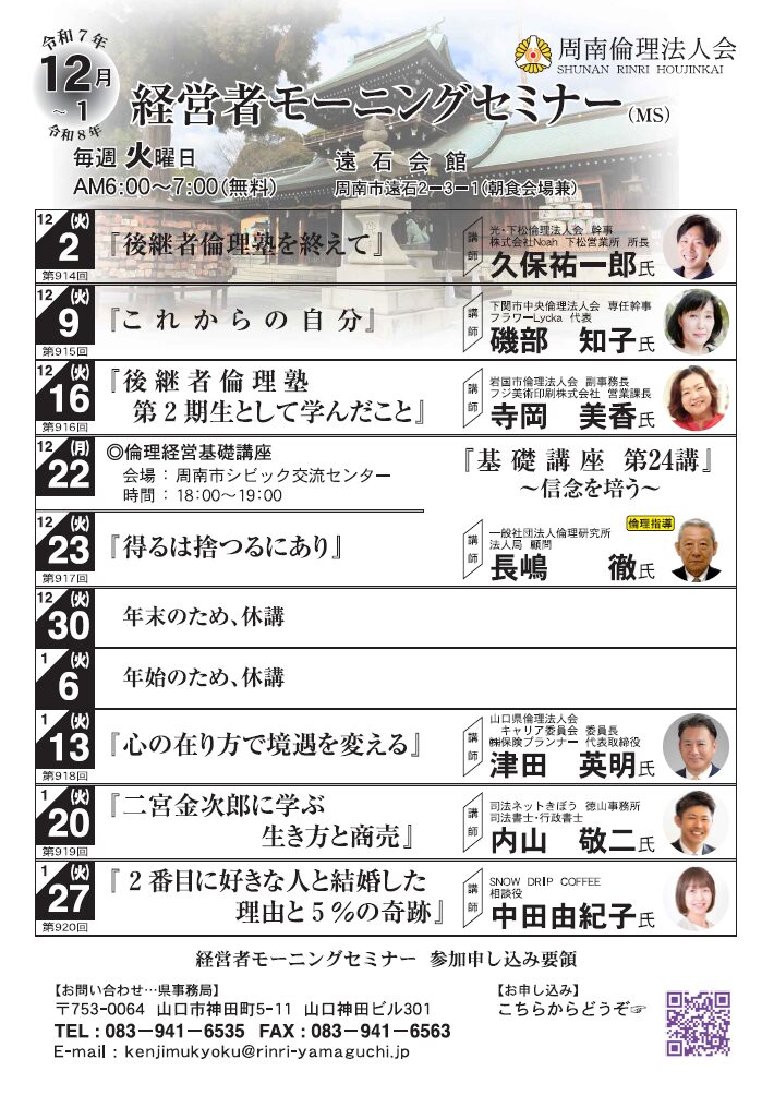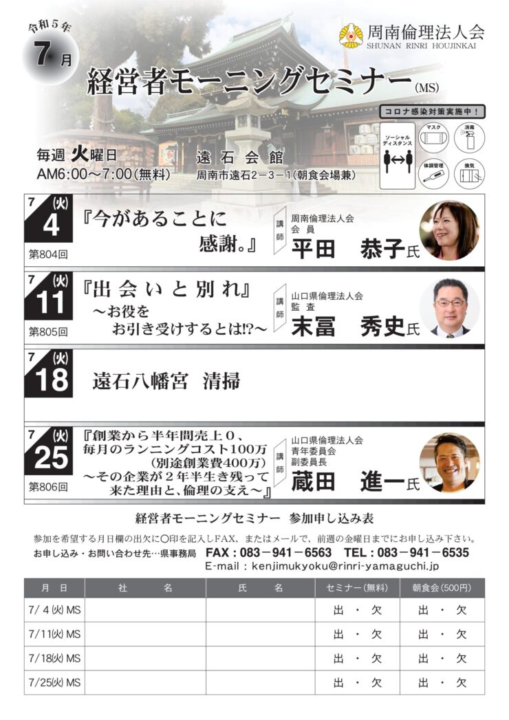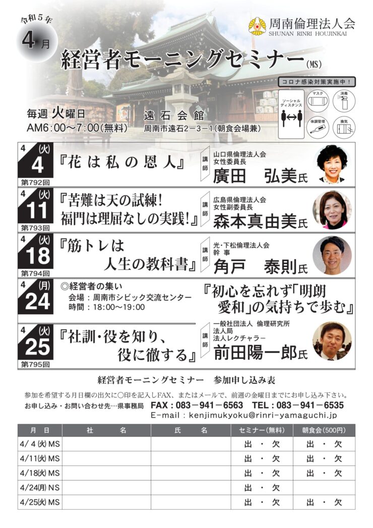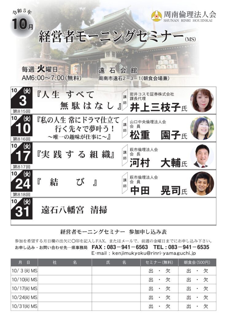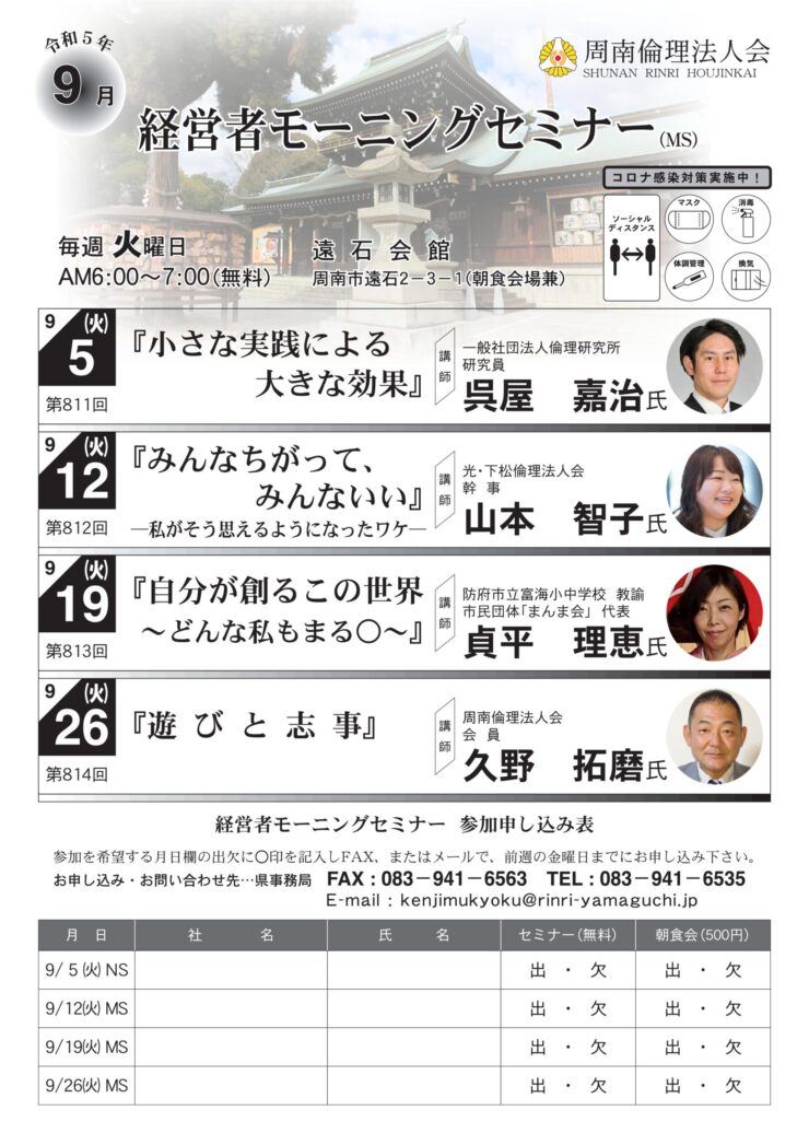 | お問合せ | 山口県倫理法人会 事務局 TEL:083-941-6535 FAX:083-941-6563 |
