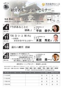 会員の皆様と共に学び実践することにより自己革新をはかり心の経営を目指し学びながら