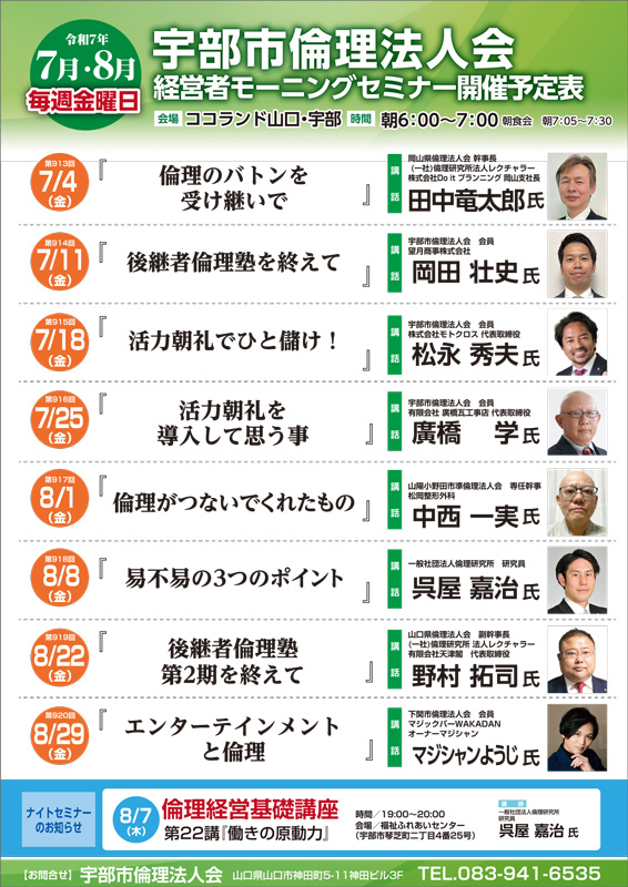 本日のテーマは、「つながる・つなぐ」でしたが、ご家族、友人、知人、倫友を含めて、大切に繋げられたからこそ、倫理の実践を職場や家庭へ反映させられています。