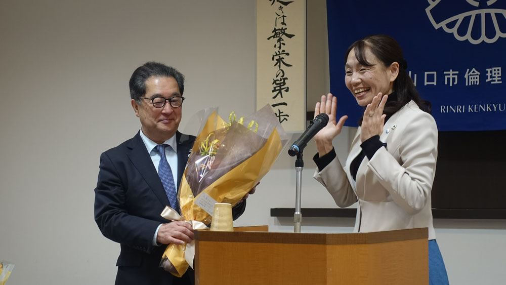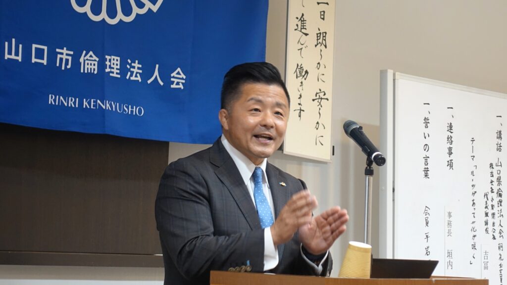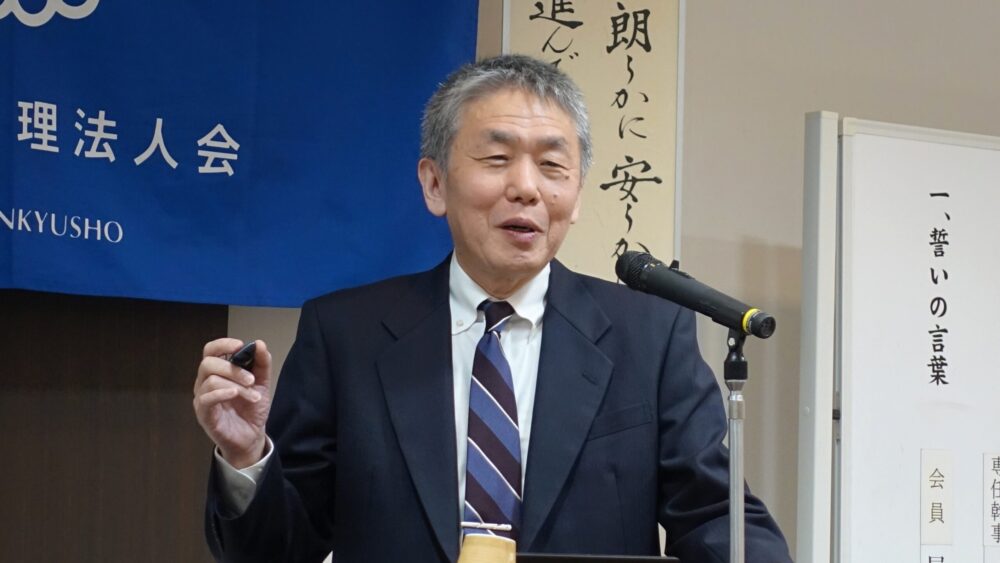 右足の踵骨折で自分で生活することもままならない中、倫理の活動のため奥様に車を運転してもらったりして人の痛みがわかるようになった。自分勝手に生きてきたので妻に優しくしたら「何を企んでいるの?」と言われたりしたそうで、自分も日頃から妻への態度は気をつけたいと思いました。