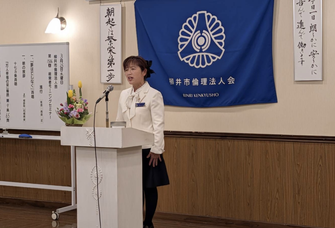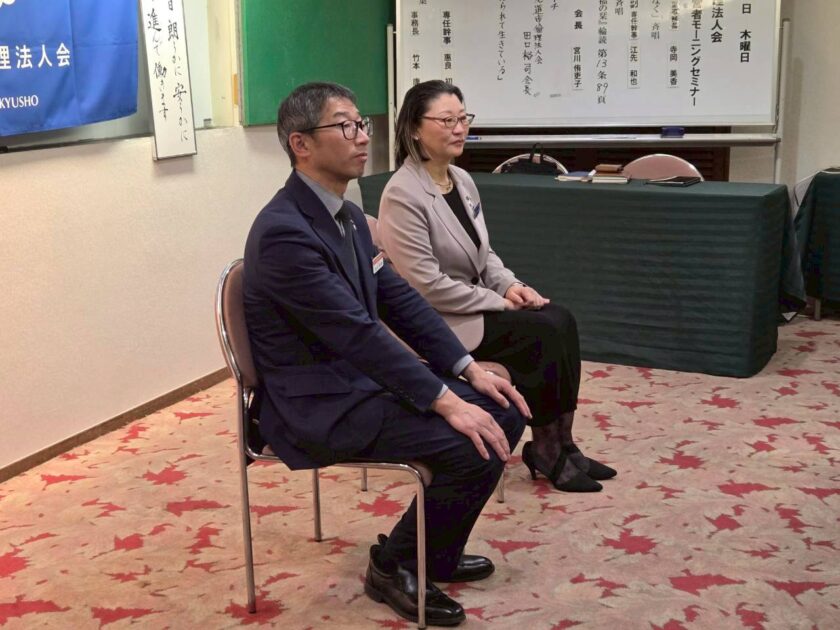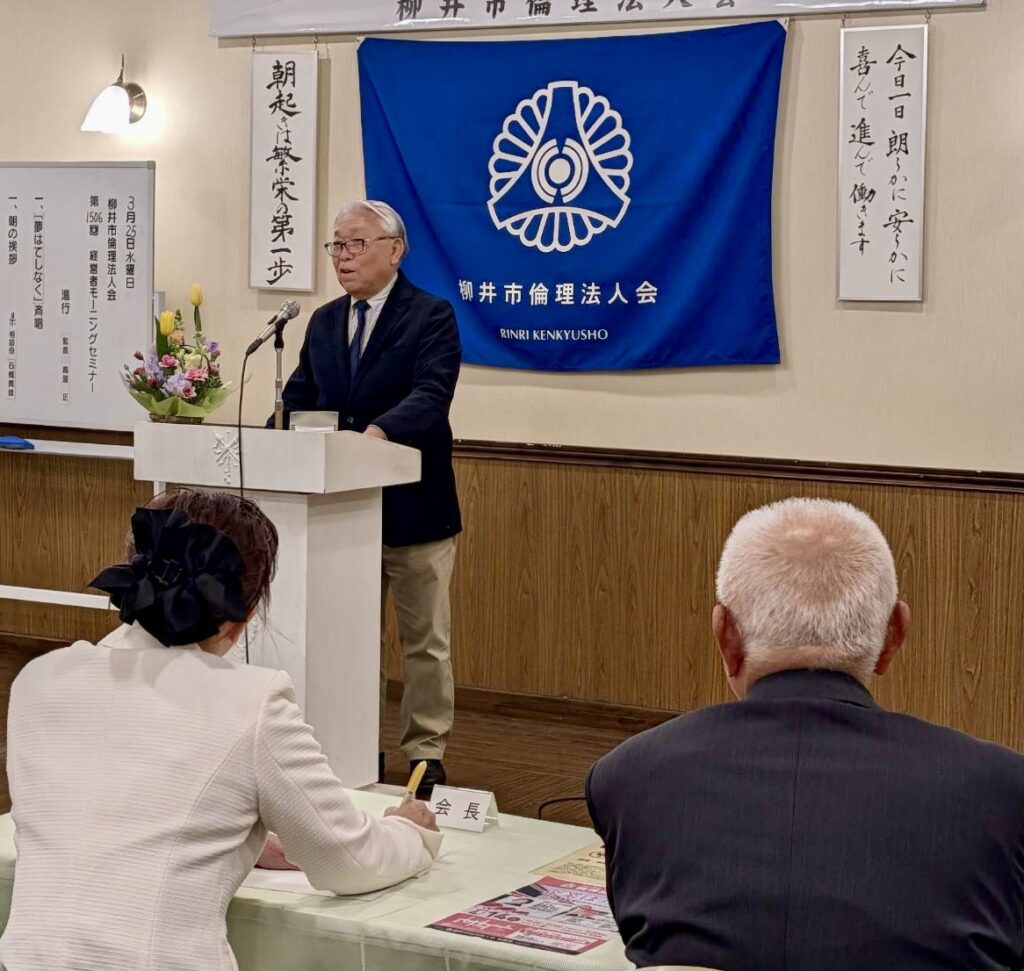 3月27日(金)のモーニングセミナーは、倫理法人会の経営者セミナー(富士研)に参加された、正田千尋幹事・金山公一幹事のお二人から体験報告をいただきました。