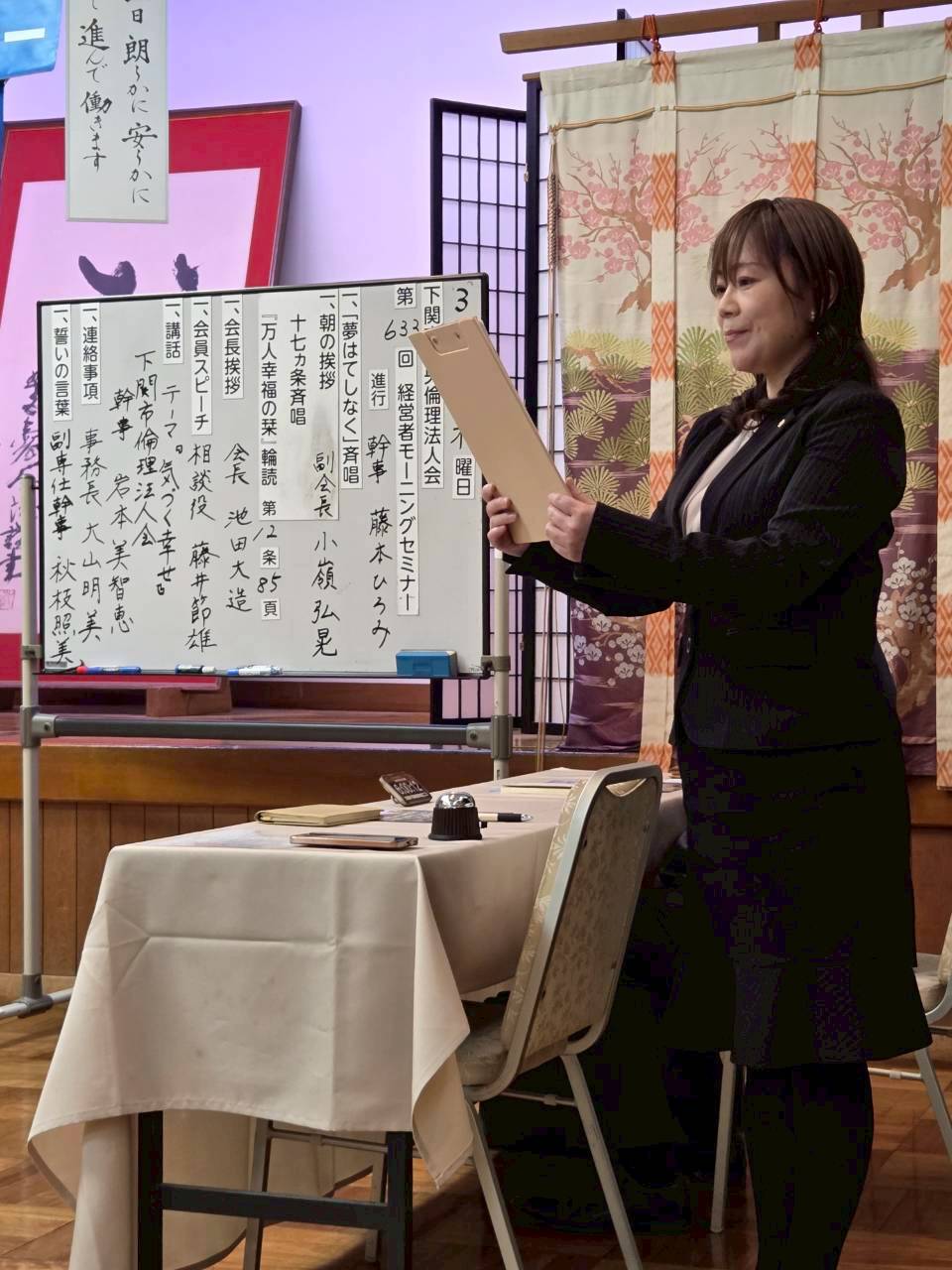 すでに参加経験のある会員にとっては当時を思い出すきっかけとなり、未参加の会員にとっては研修を具体的にイメージできる、素晴らしいご講話でした。ありがとうございました。
