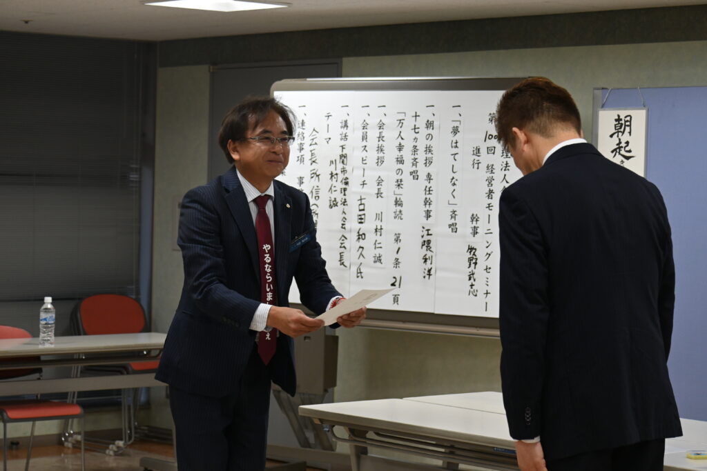 関市にある介護施設セービングの後継者候補・佐藤慎太郎さんの講話、思わず胸が熱くなる内容でした。