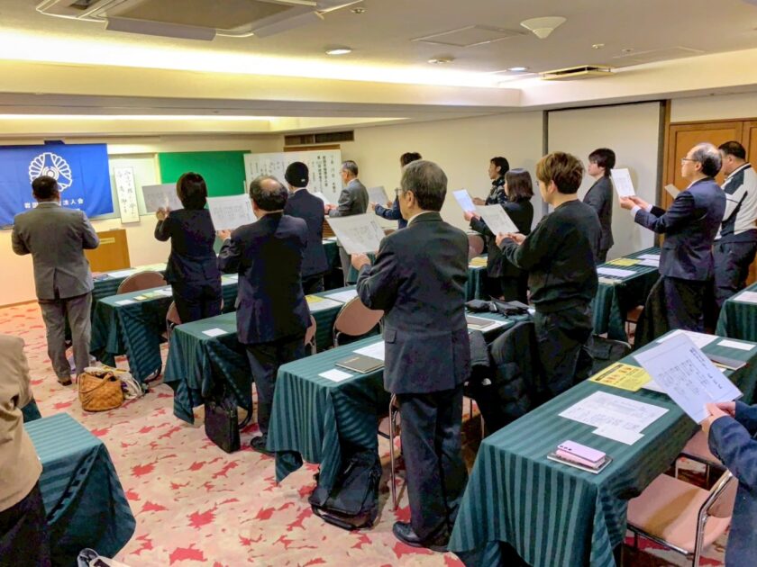 山口県倫理法人会 小田研修委員長の「万人幸福の栞を書く」