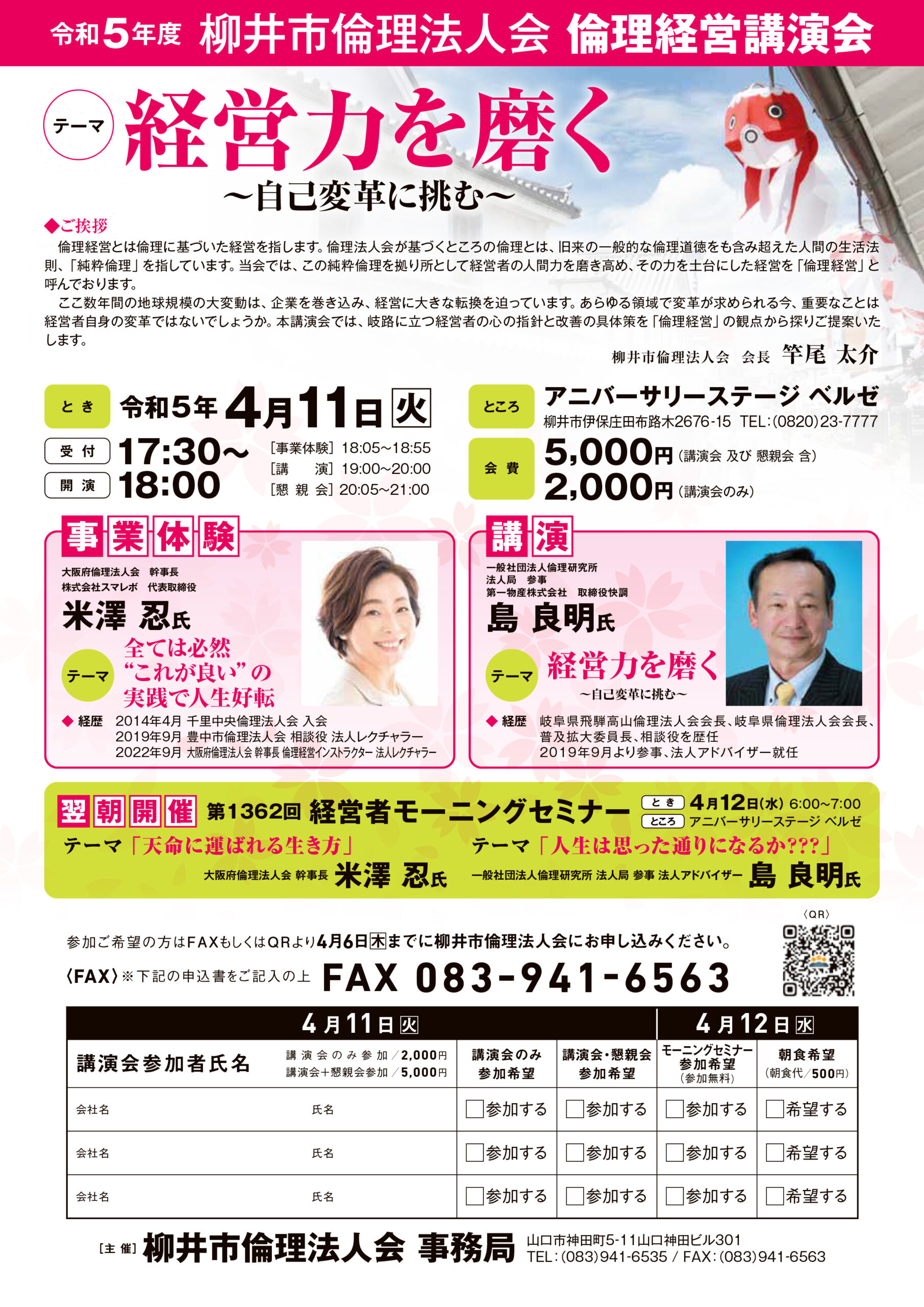山口県倫理法人会 事務局 TEL:083-941-6535 FAX:083-941-6563 |