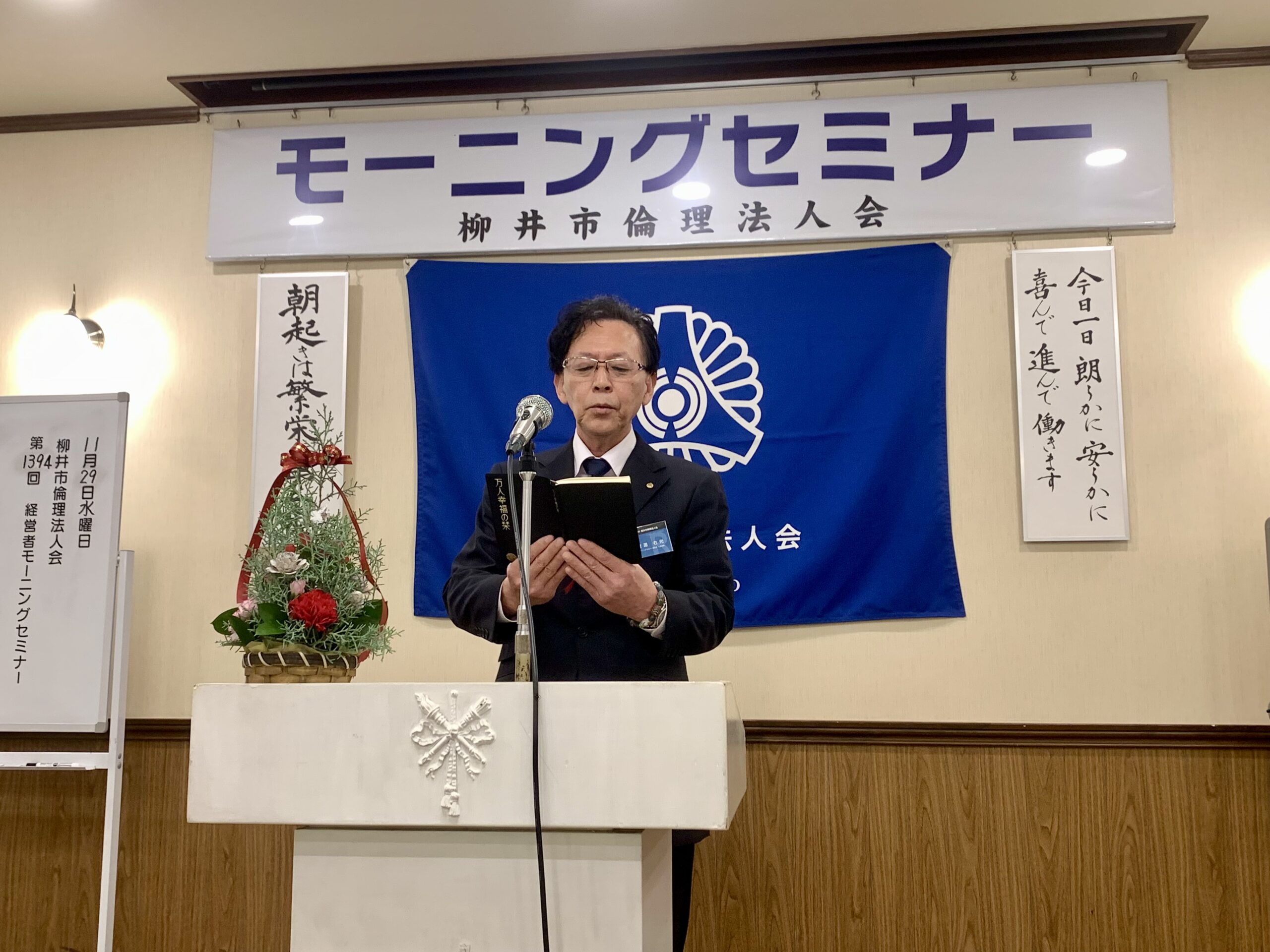 第1493回モーニングセミナーは山口県倫理法人会 副会長(山口調理機株式会社 代表取締役)の歳弘慎吾様に「で き る !」と題しご講話を頂きました。