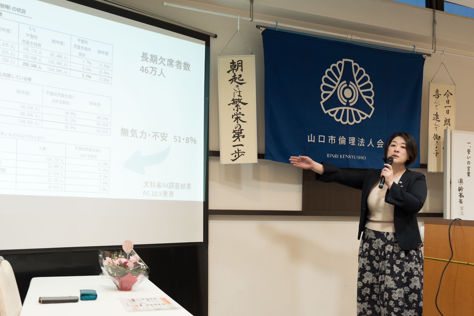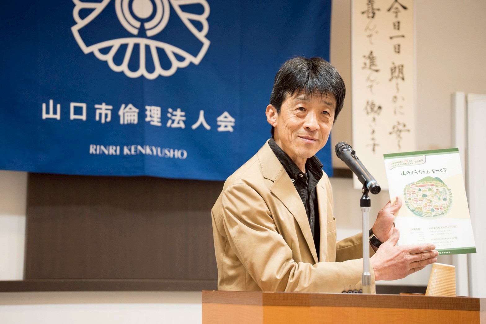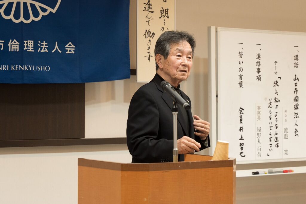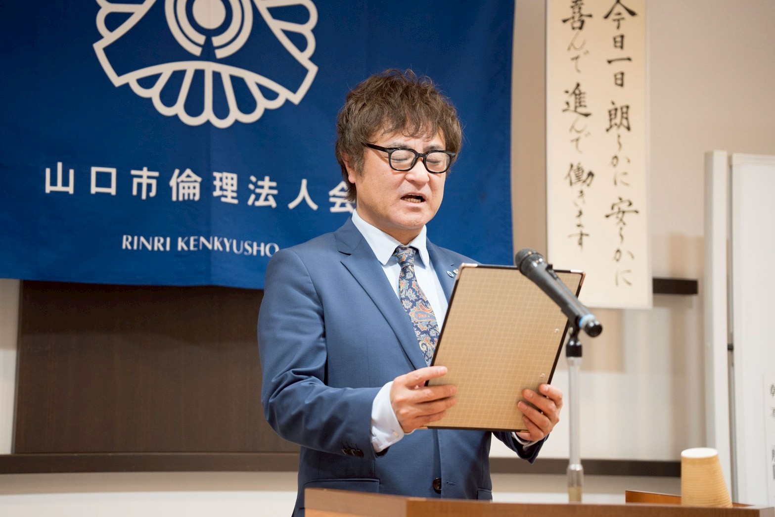 本日は、学校法人片山学園 小郡幼稚園 片山耕修園長を講話者に『山のようちえんをつくる』のテーマでお話しいただきました。祖父の時代からの三代目として、40年従事しておられるそうです。幼稚園教育に対して、確固たる信念をお持ちで「先生は監視カメラになってはいけない。先生(大人)は子どもと一緒に働き、背中を見せるんです」と言う言葉に、思わず頷きました。