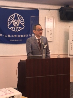 本日の美祢・山陽小野田倫理法人会モーニングセミナーは、下関倫理法人会会員 前下関市長 中尾 友昭氏に
