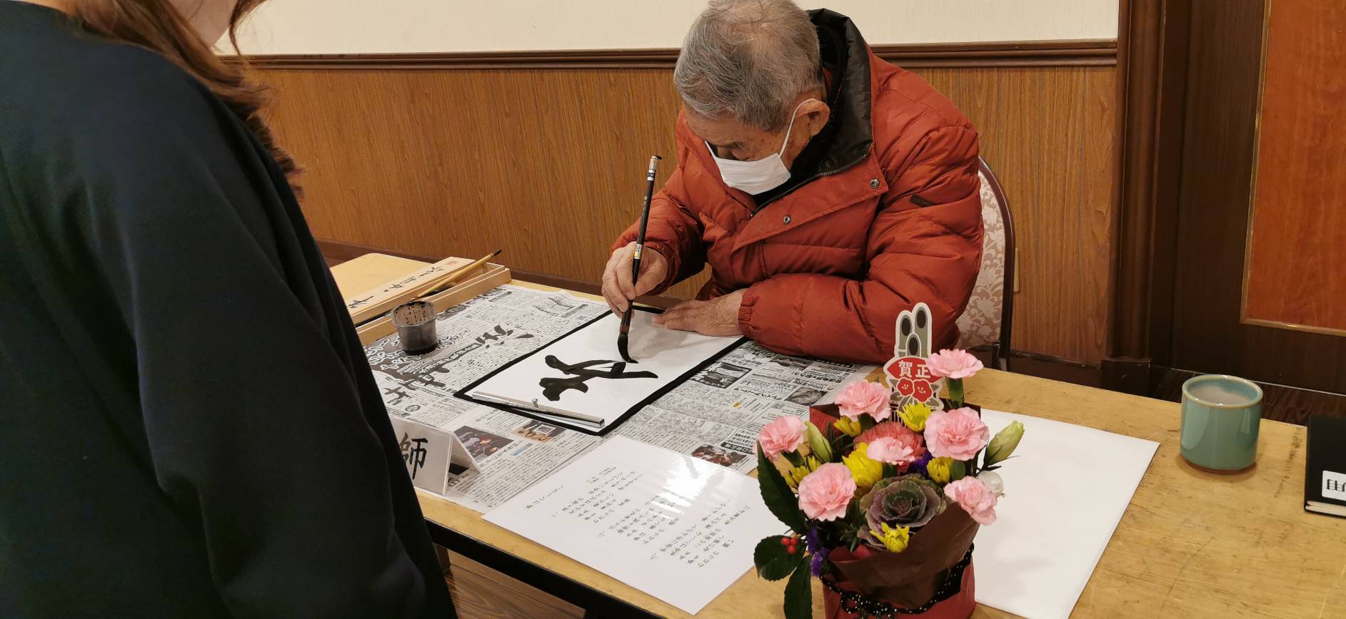 特別講師に書家の林美智子先生をお招きして、皆気持ちを込めて、今年の決意を書にしました。