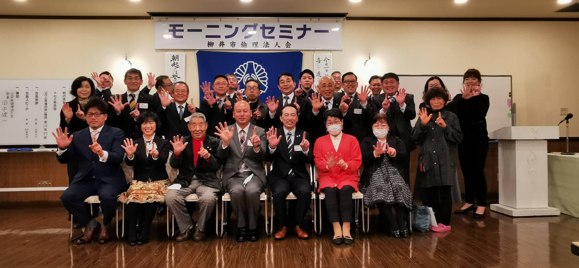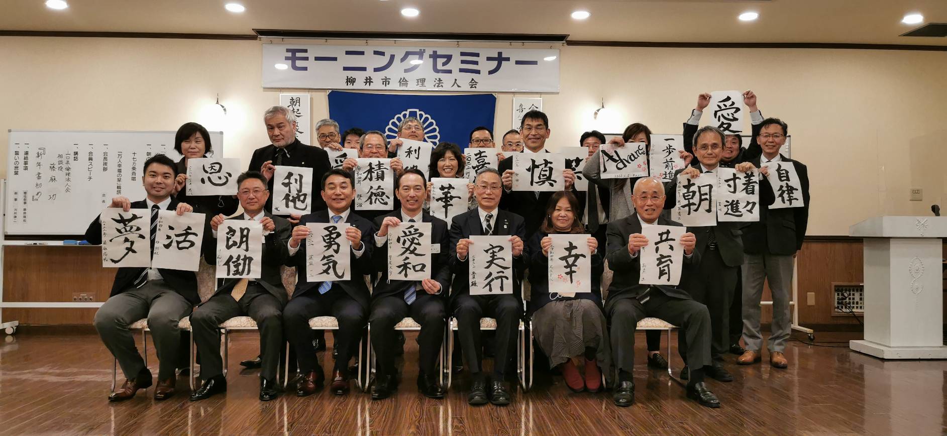 柳井市倫理法人会2023年最初のモーニングセミナー(第1348回)は、恒例の新年書初めでした。
