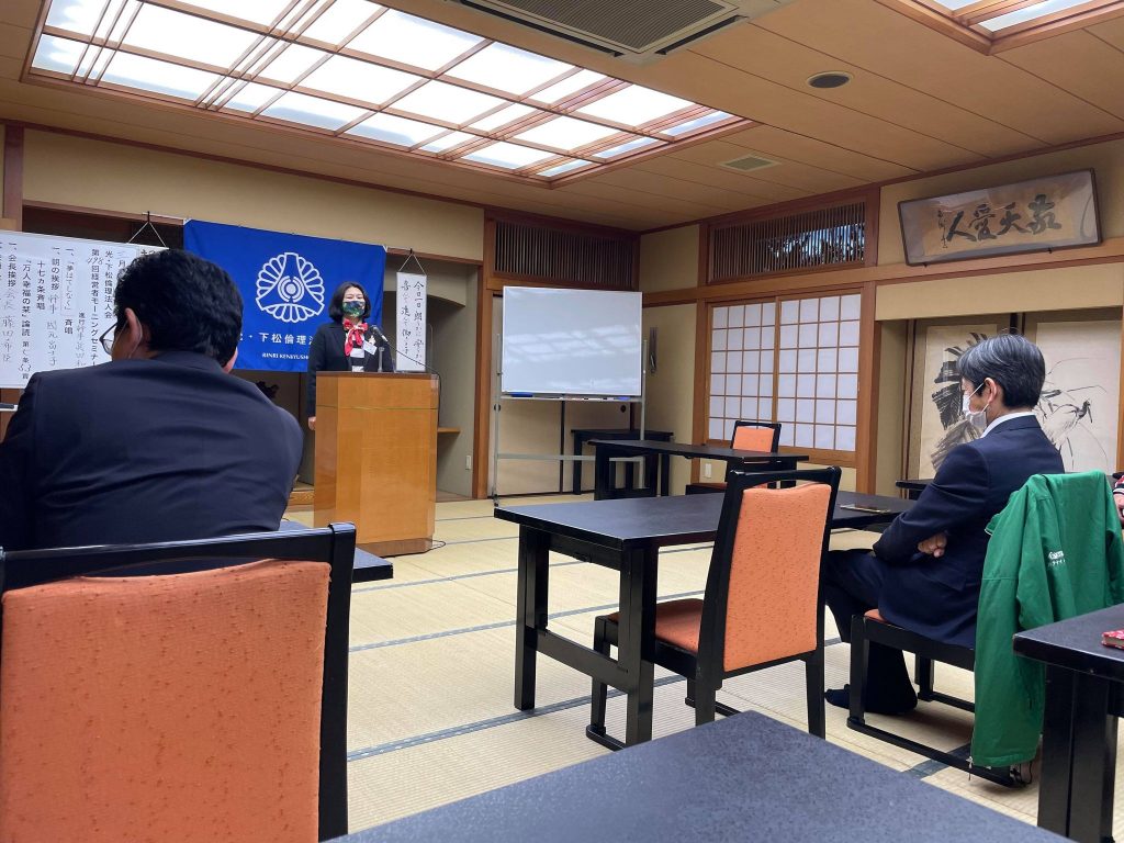 2021年2月12日(金)第496回MS 講師:山口県倫理法人会朝礼委員長 平岩 陽子 氏 テーマ:活力朝礼で倖せになる!~心と心をつなぐ最幸の時間~