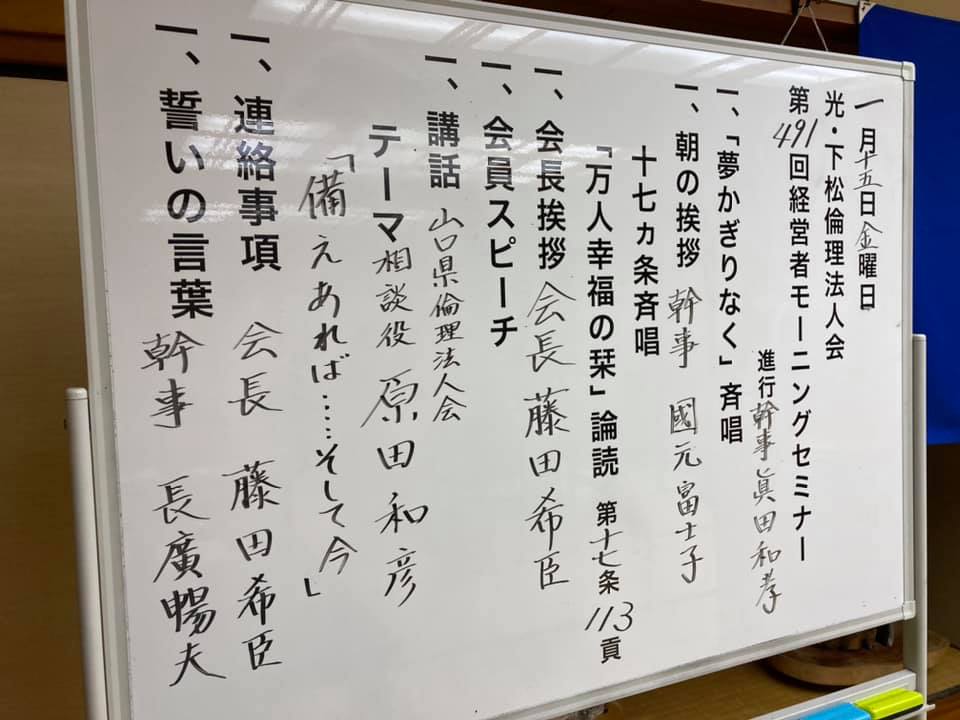| 講師 | 柳井市倫理法人会 専任幹事 藤麻 陽祐 氏 |