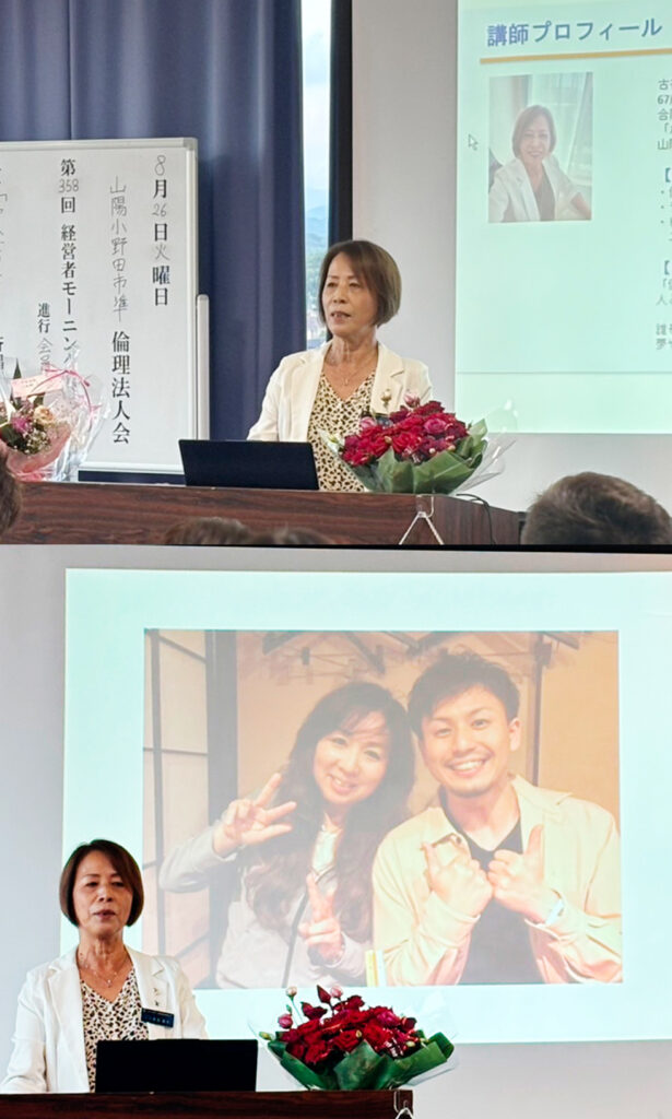 2025年8月26日(火)第358回 MS 講師:山陽小野田市準倫理法人会 会長 古谷 郁子 氏 テーマ:「人生に彩りを~私の歩んだ道」