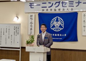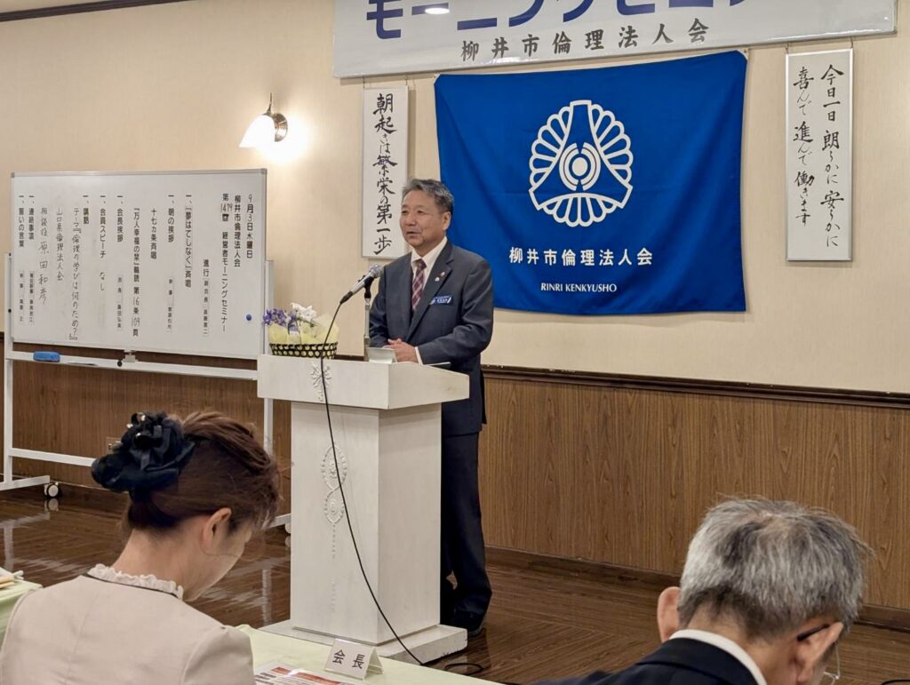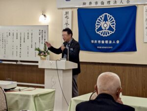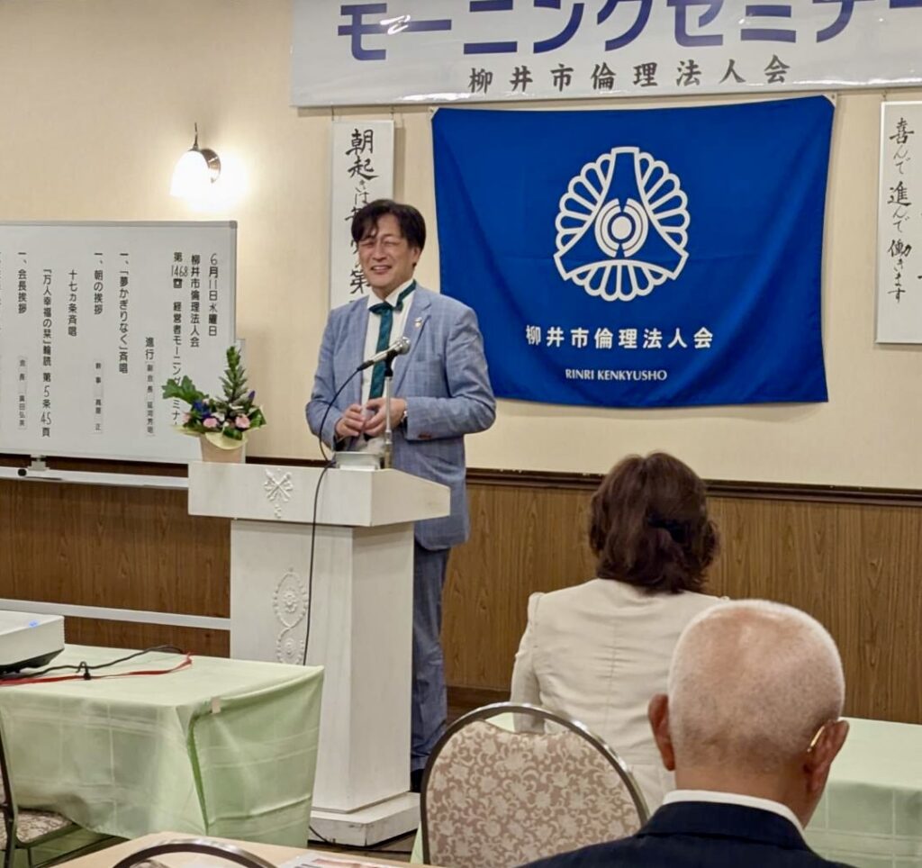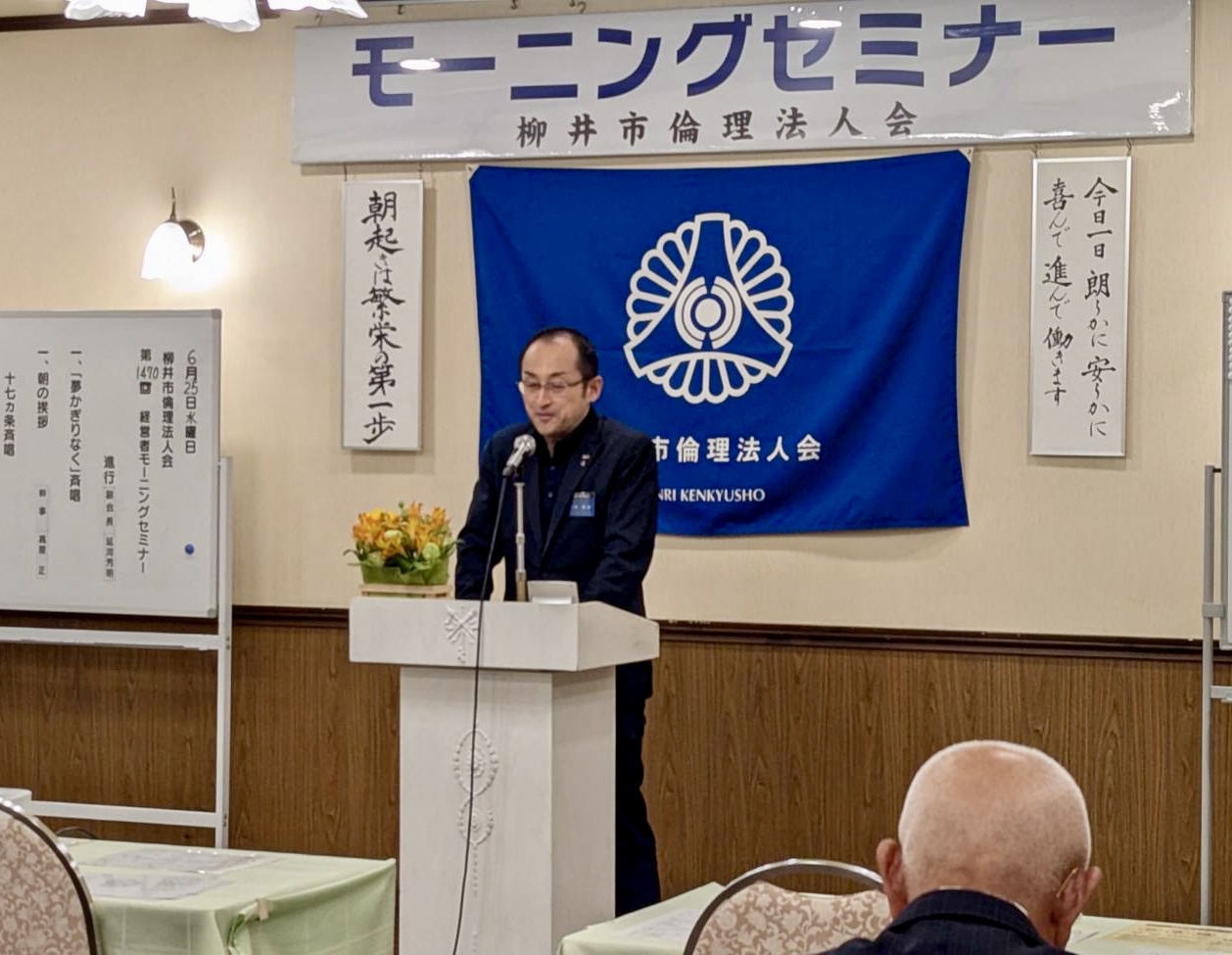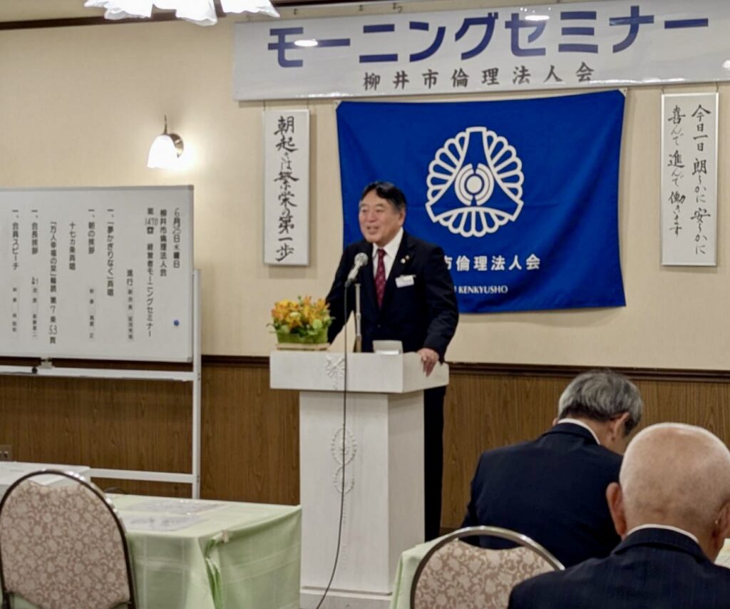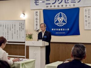令和8年度初回となる第1479回モーニングセミナーは山口県倫理法人会 相談役(有限会社 和 建築設計事務所 代表取締役)原田和彦様に「倫理の学びは何のため?」と題し、ご講話いただきました。