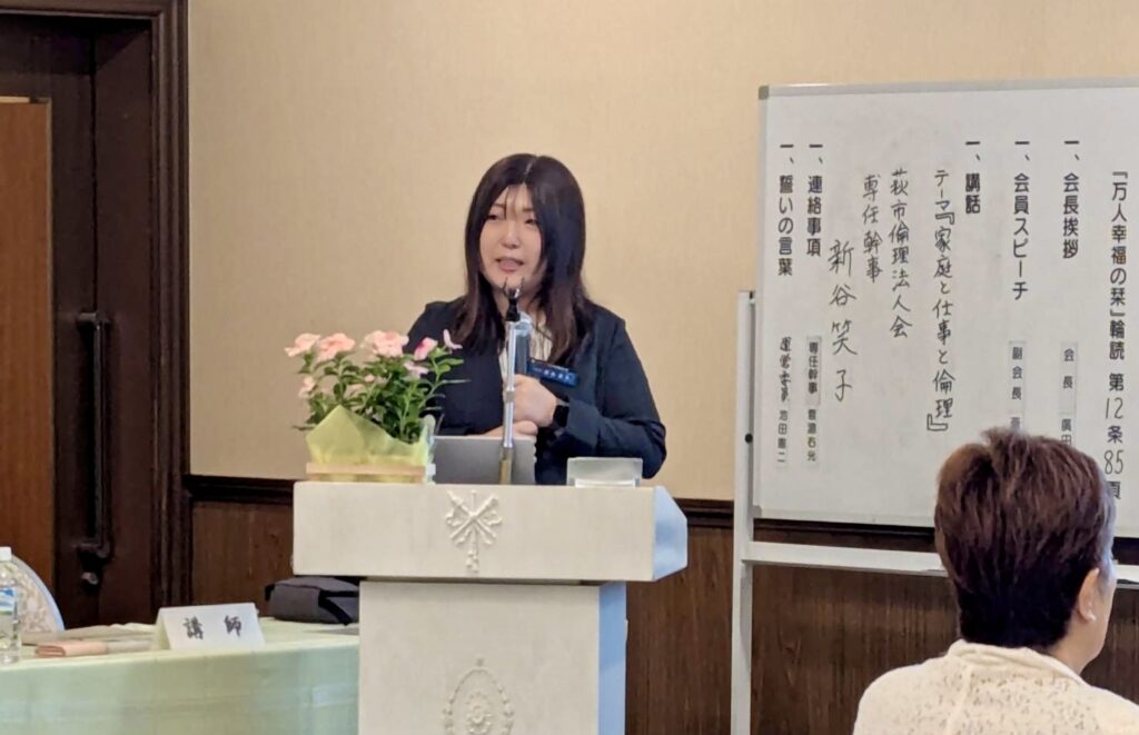 | 講師 | (一社)倫理研究所 法人スーパーバイザー ホクビ建設(株)代表取締役会長 松森悦子 氏 |