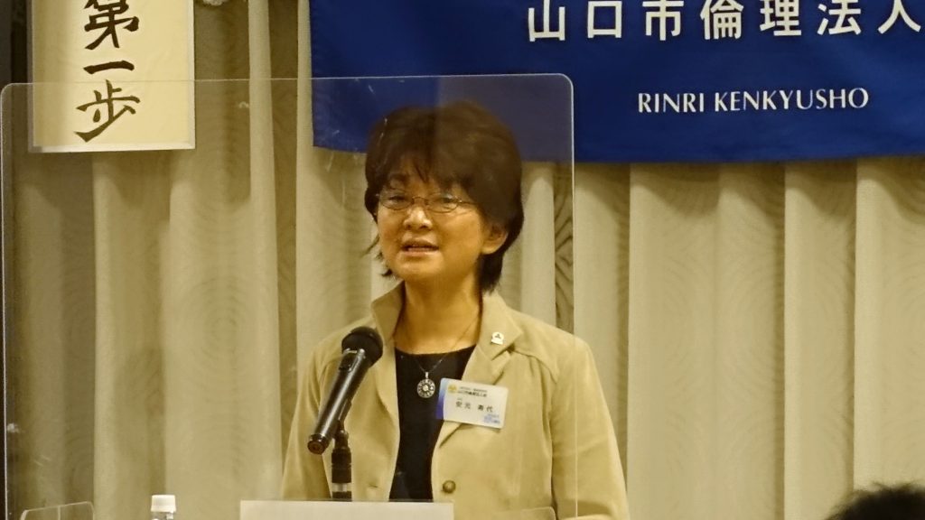 講話:母親教室やインターネット講座で、子供の口腔育成が歯並びや顔かたちに影響することを広めている歯科衛生士で健口教育指導士の資格を持つ小宮美子さんの講話でした。大人になっての習慣は幼少期に蓄えた記憶なので、歯磨きのコツだけでなく、歯が生える前からの舌や顎を正常に使った食べ方の大切さを伝えるため、父親から受け継いだ精神で「無いものは自分で作る」と自作の大きな歯ブラシや歯型を使って日々活動されている様子が伝わってきました。
