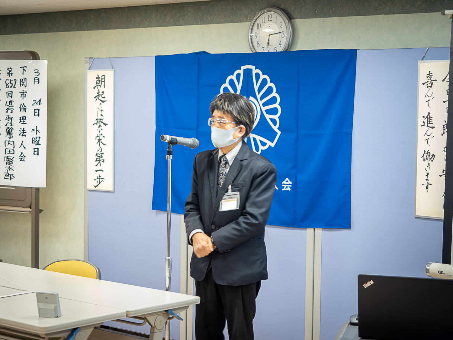 | 講師 | 下関市中央倫理法人会 事務長 (株)シモバン 工務部長 小嶺 弘晃氏 |