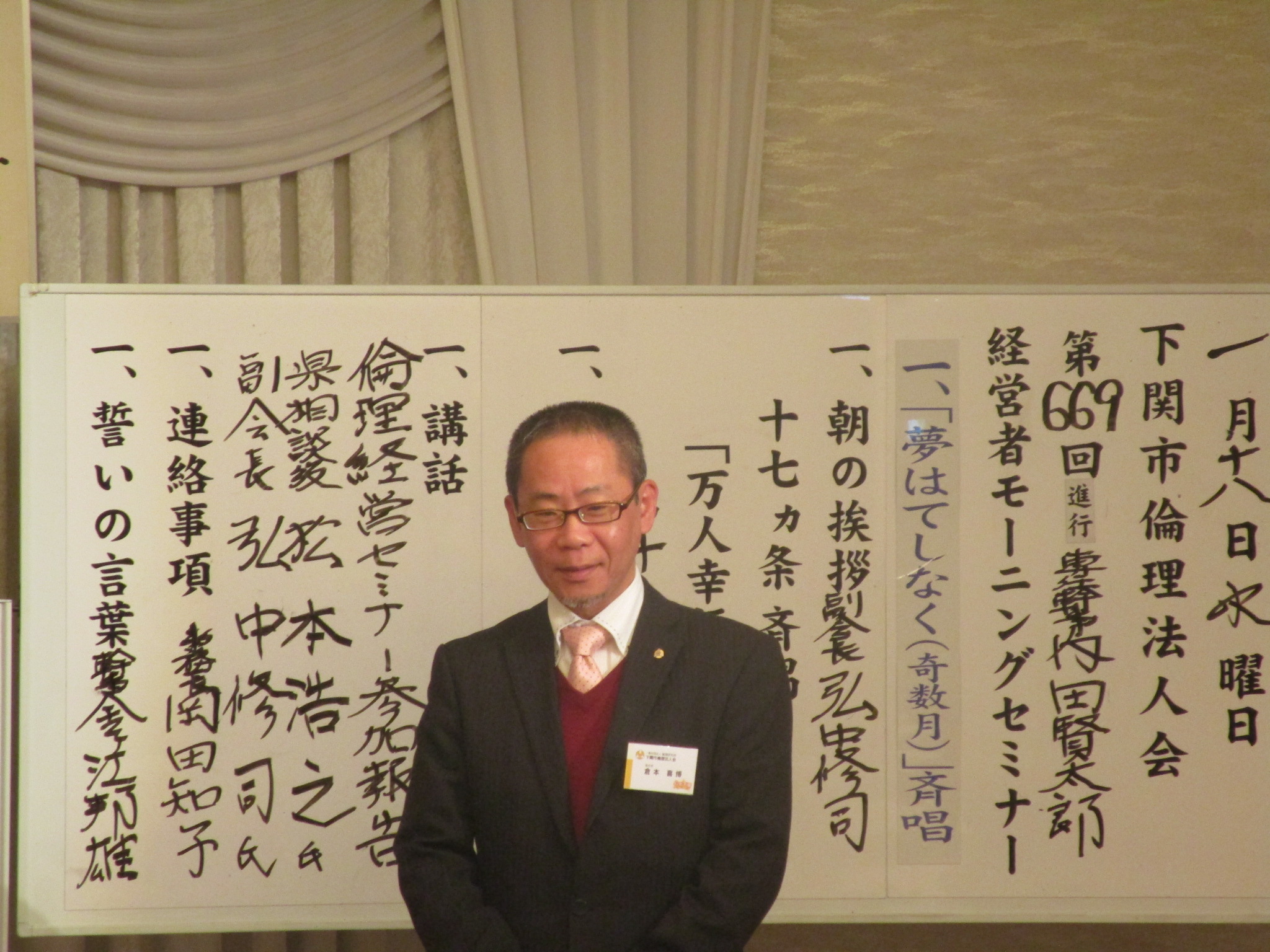 | 講師 | 金ヶ江 邦雄 氏(下関市倫理法人会 幹事) |