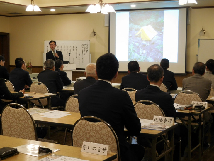 会員スピーチは、尾崎 文彦 県朝礼委員長(有限会社むつみ)でした。
