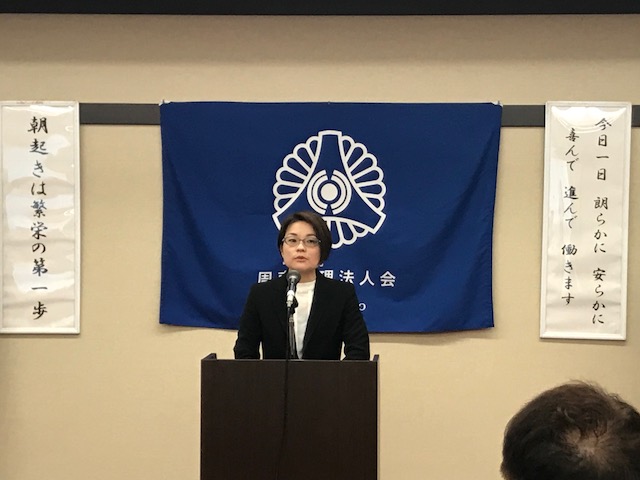 講話:小濱加代様 (柳井市倫理法人会 女性委員長)