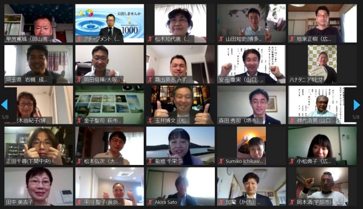山口県倫理法人会作成の「モーニングセミナーガイドライン 役職様へ」に沿って、会場の換気、受付での検温と手指のアルコール消毒、全員のマスク着用、着席間隔を空ける、終了後に備品(机・イス・時計など)や机上に配置するラミネート資料他のアルコール消毒(ニトリルグローブ・使い捨てレーヨンタオル使用)などを行い、緊張感と久しぶりに顔を合わせる嬉しさの中、ベルの音が鳴り始めました。
