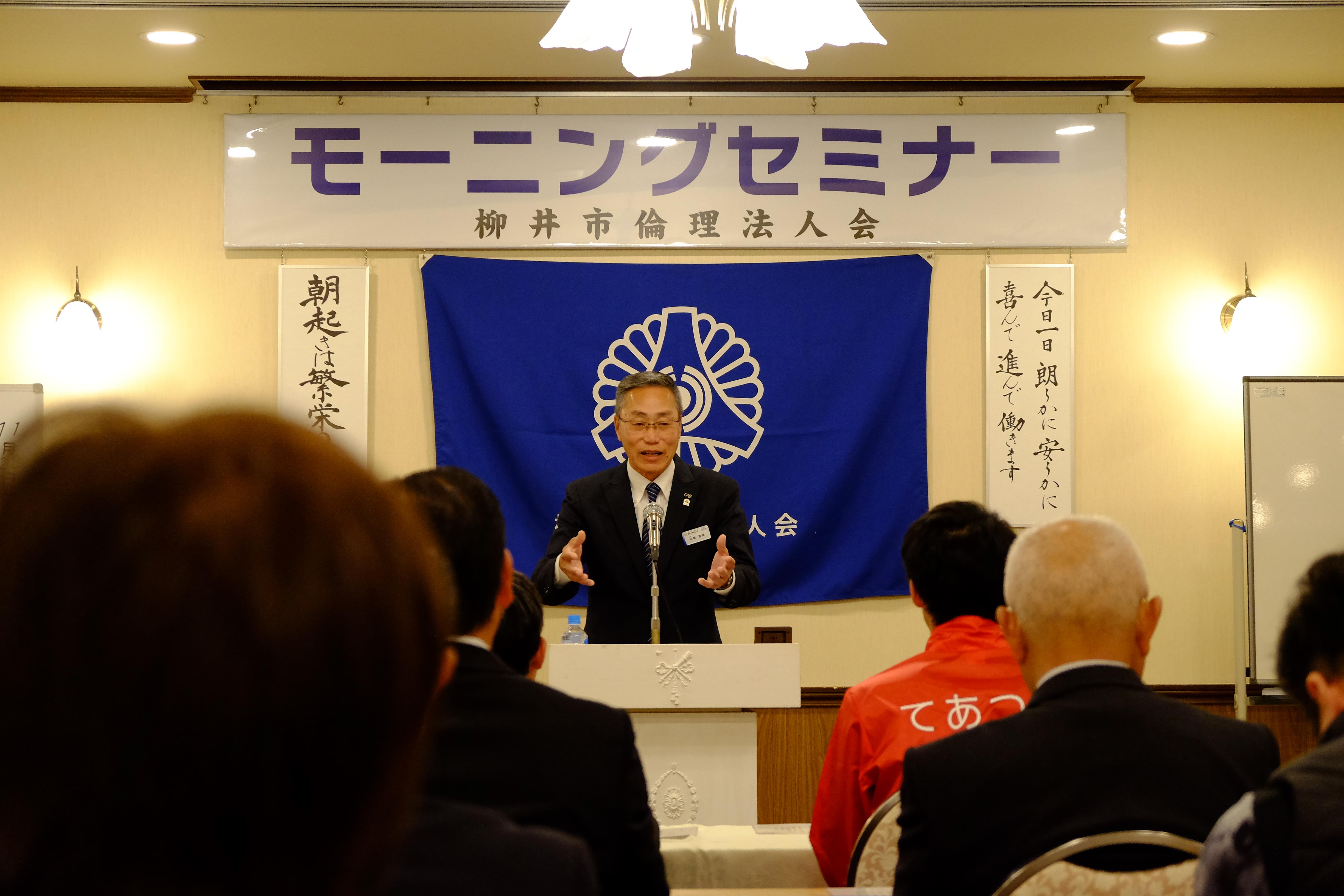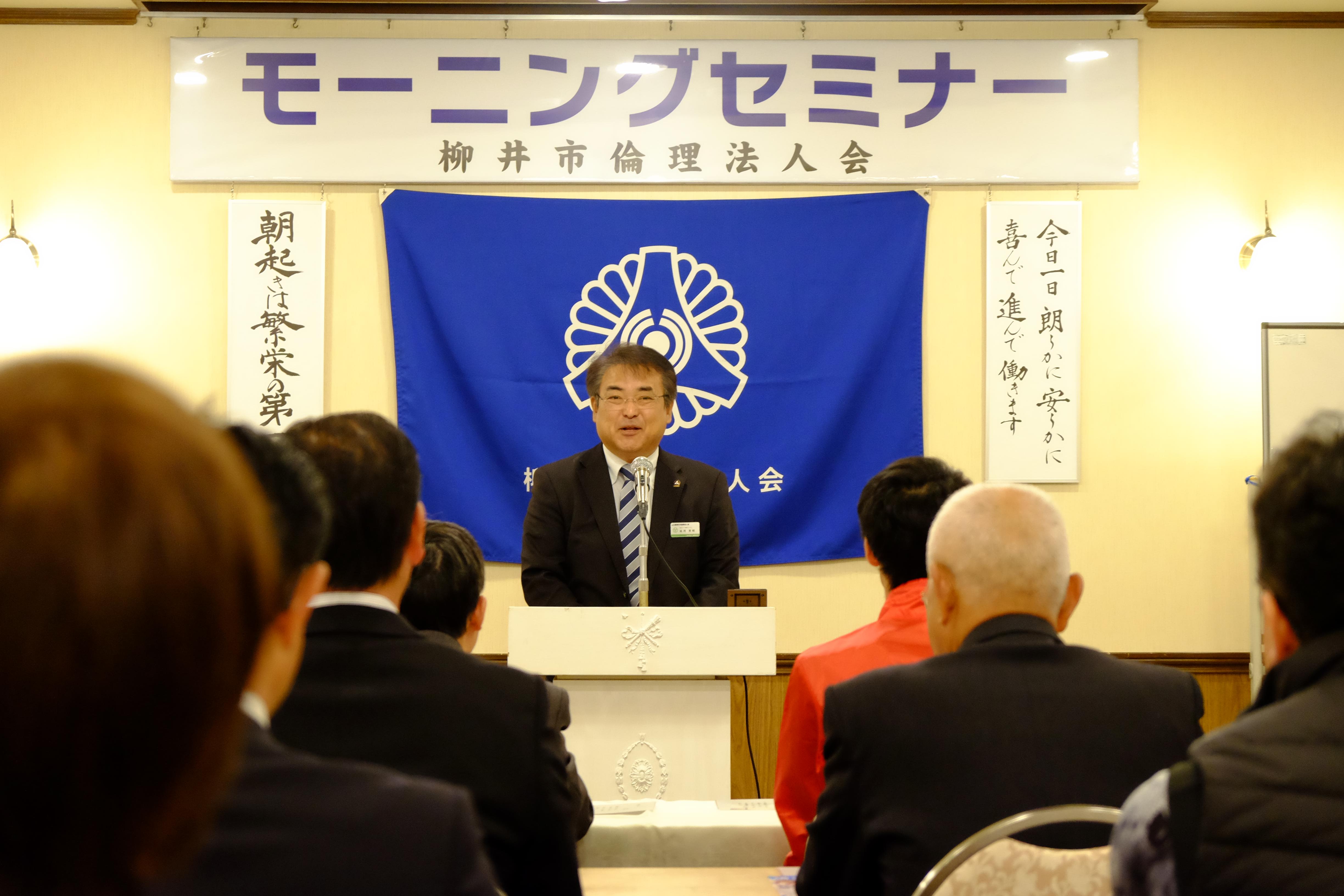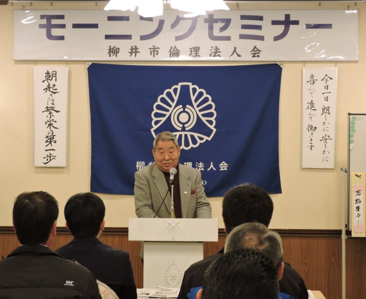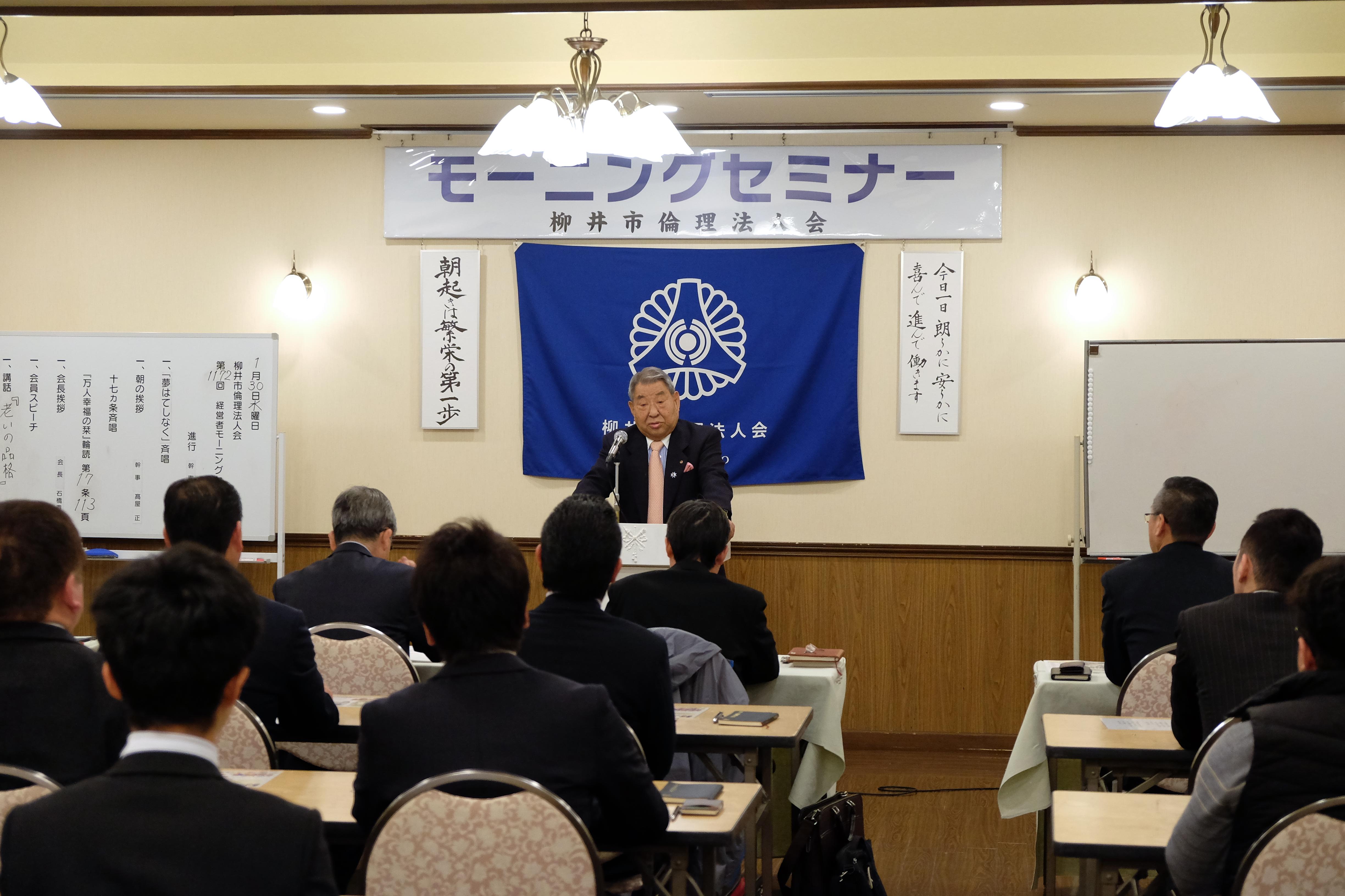 3月27日第1180回柳井市倫理法人会経営者モーニングセミナーは、柳井市倫理法人会 研修副委員長 ㈱巽設計コンサルタント 代表取締役 光井 謙二 氏をお迎えして「人生いろいろ」と、題してお話をいただきました。
