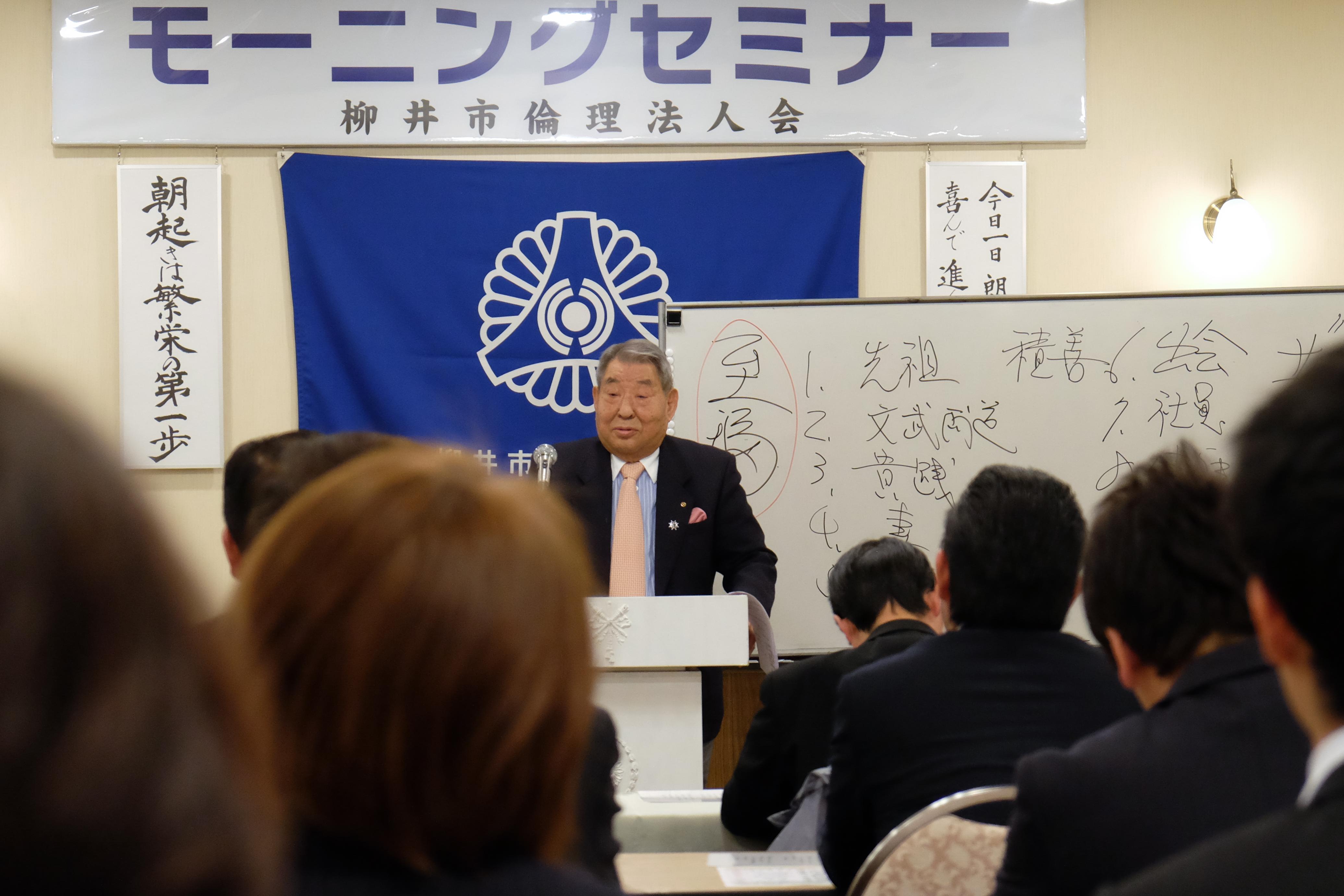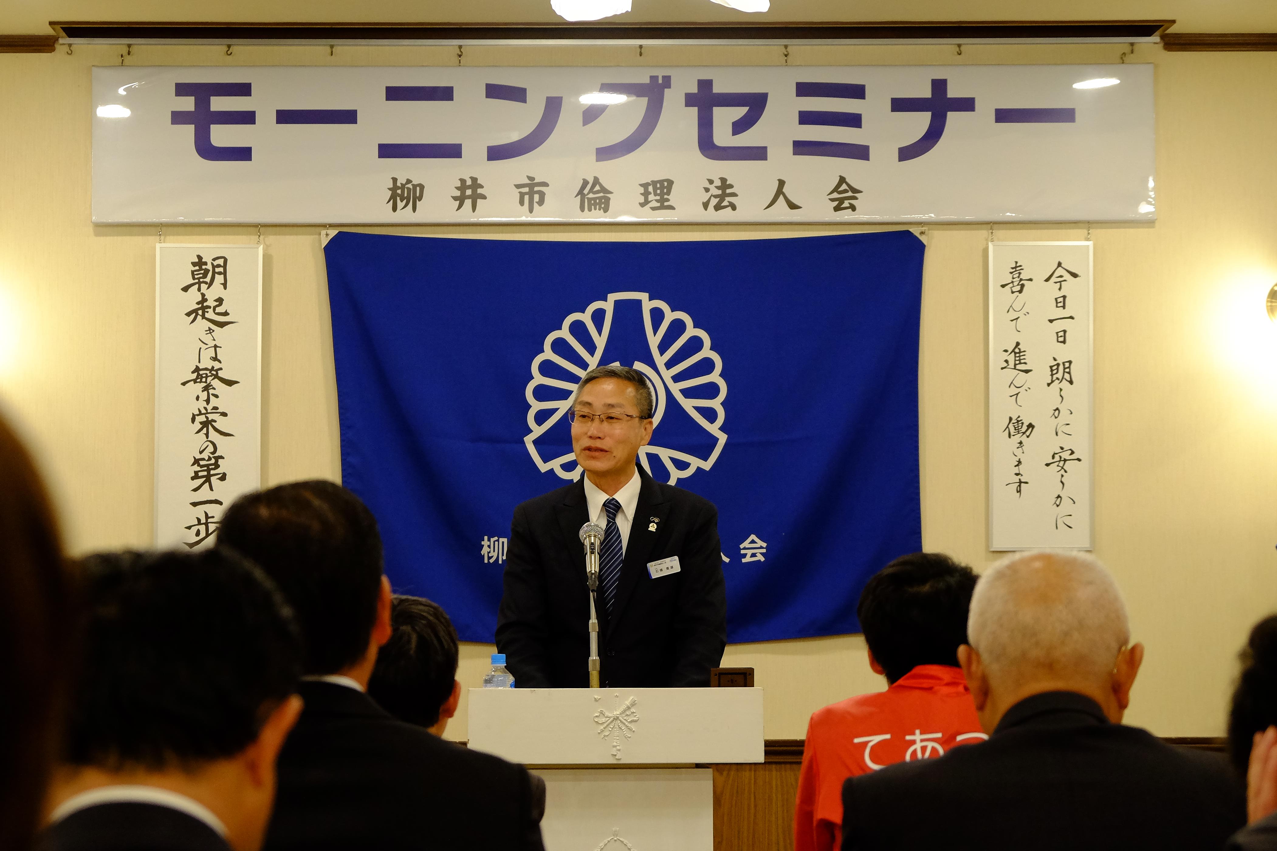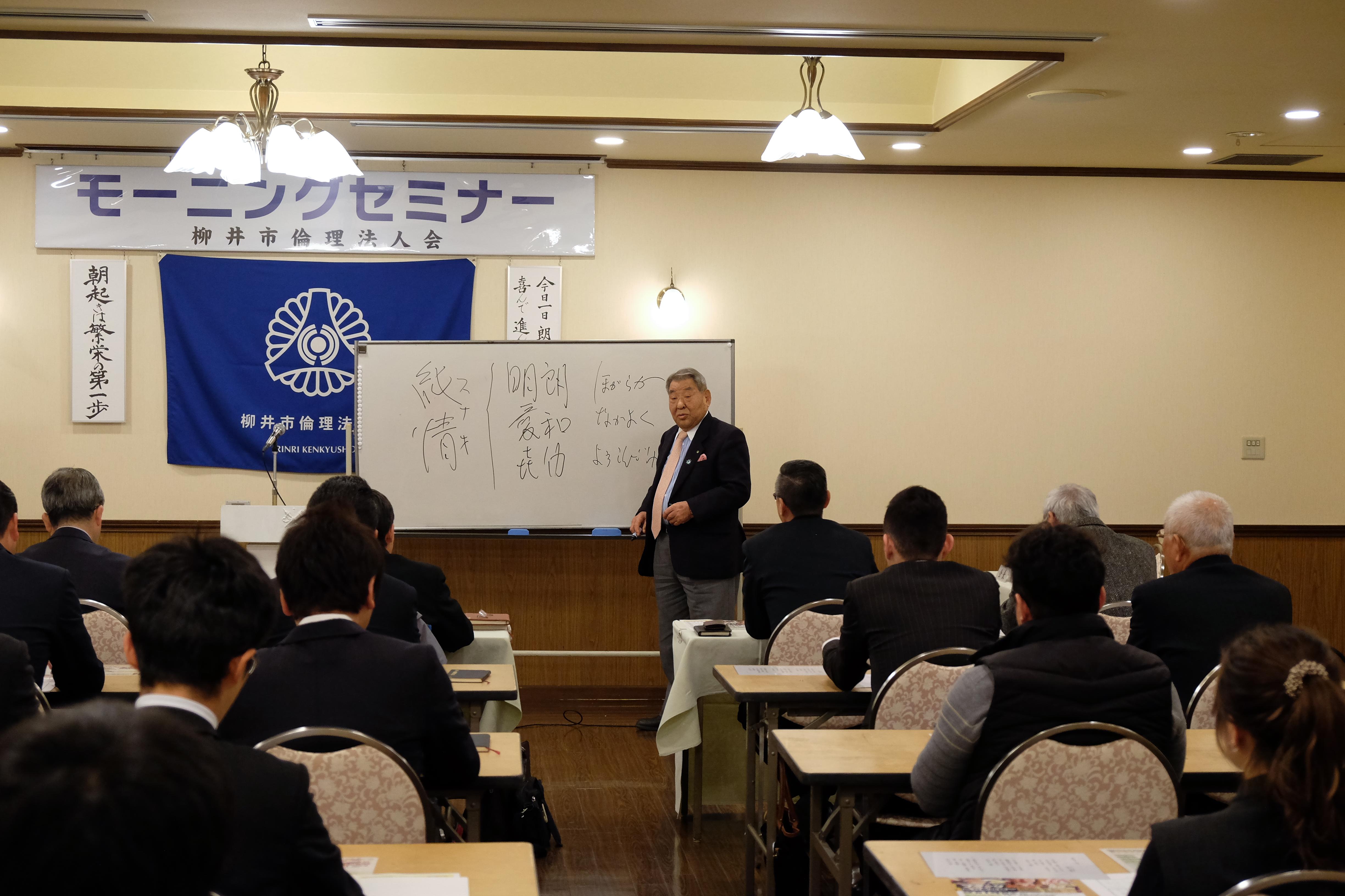 3月27日第1180回柳井市倫理法人会経営者モーニングセミナーは、柳井市倫理法人会 研修副委員長 ㈱巽設計コンサルタント 代表取締役 光井 謙二 氏をお迎えして「人生いろいろ」と、題してお話をいただきました。