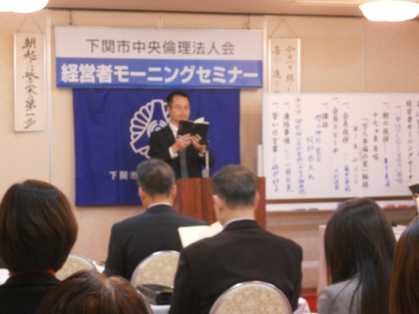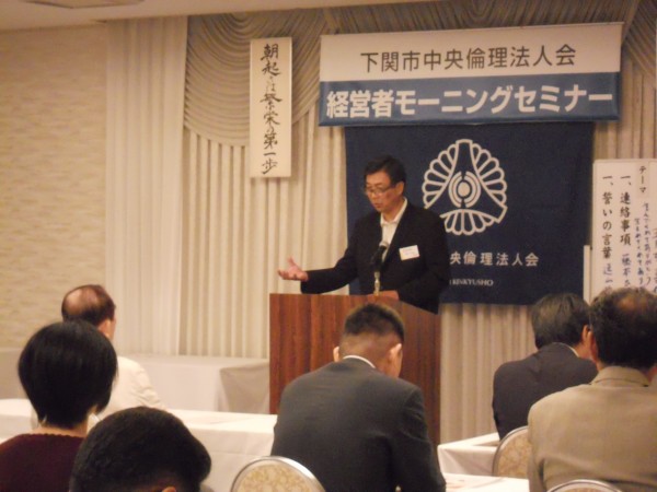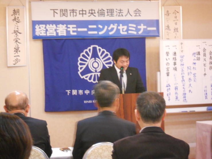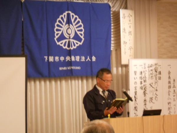 【講話】 講師:大谷龍夫氏 (山陽小野田市倫理法人会 専任幹事) テーマ:「活力朝礼の実践と効果」