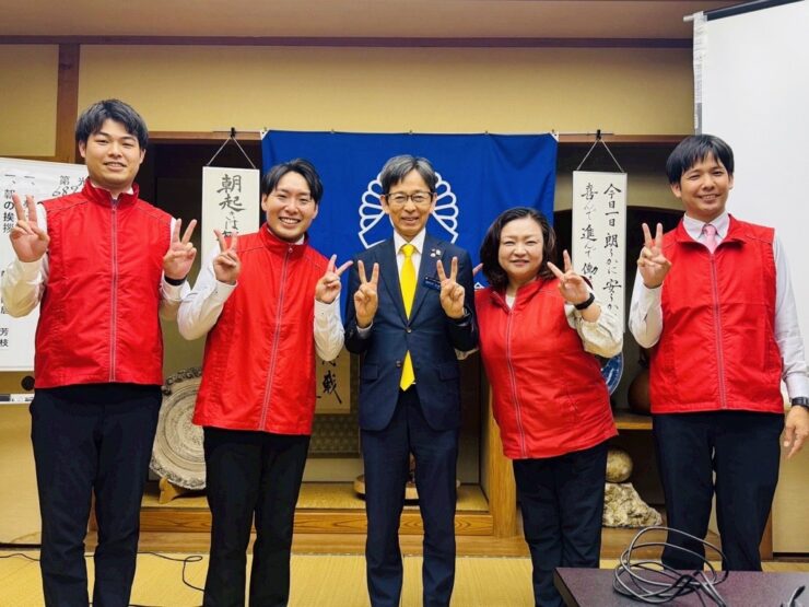 (写真右から、株式会社Noahの乙部さん・内山社長・久保さん、朝礼委員の國元幹事)