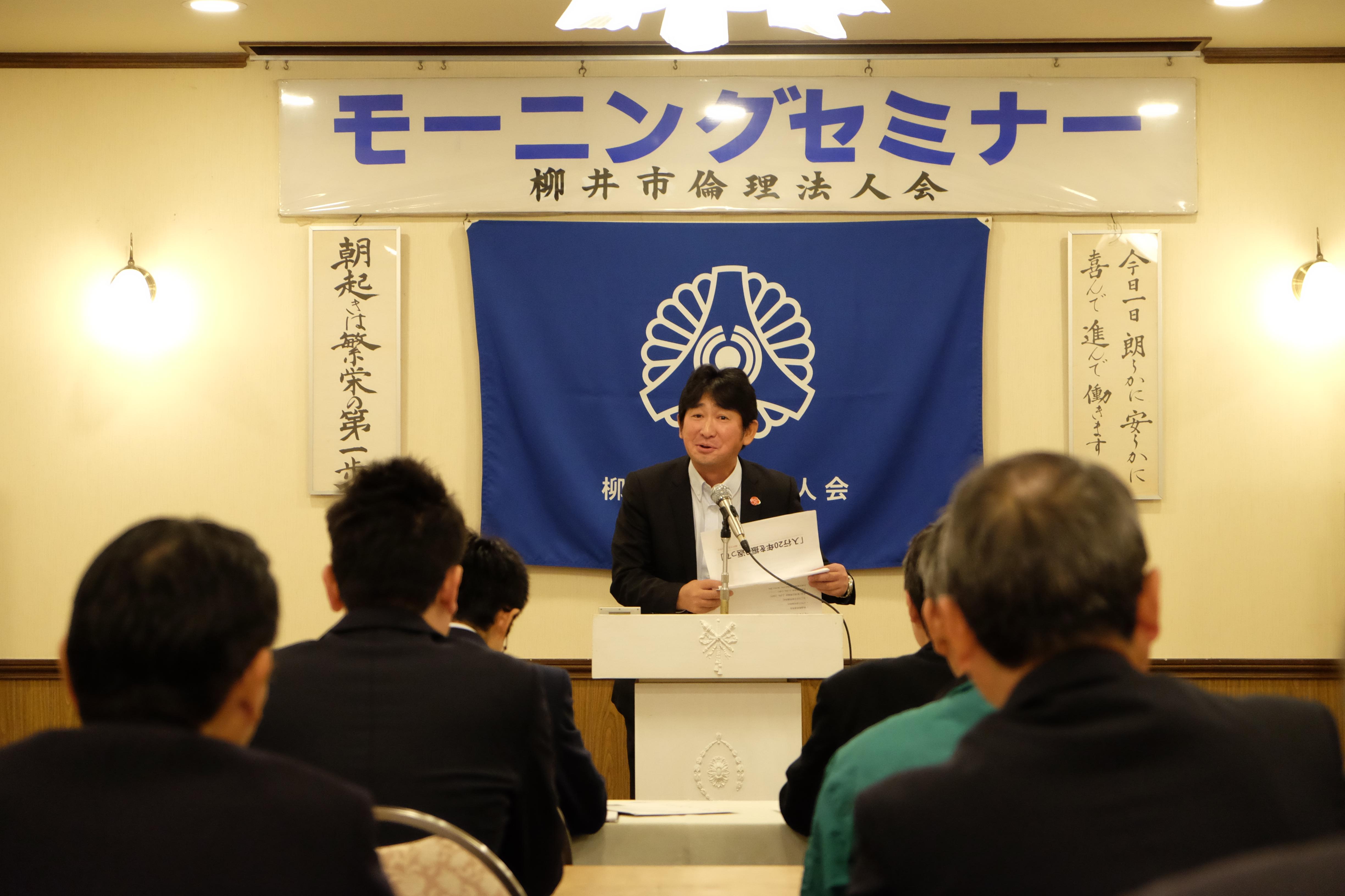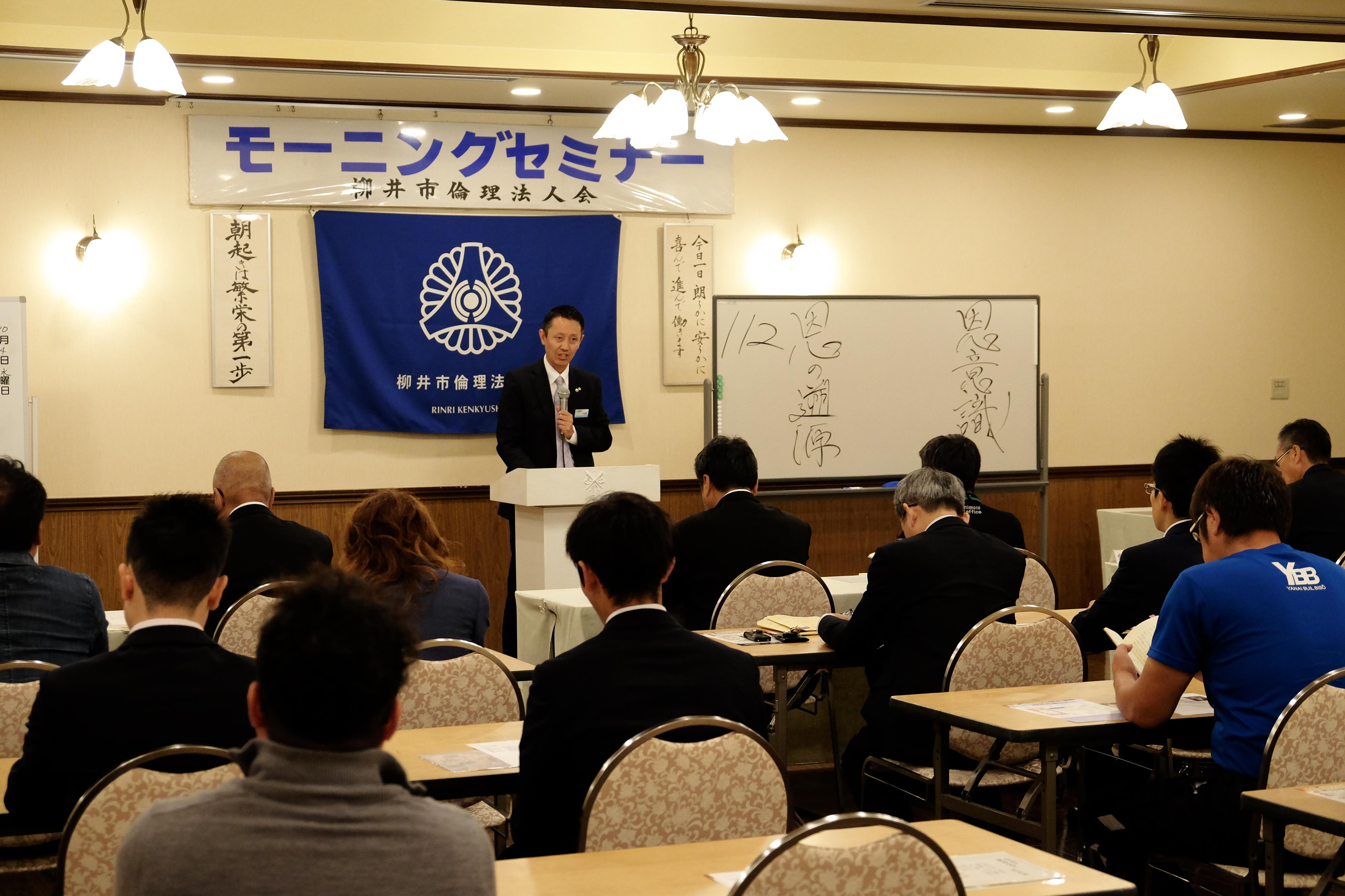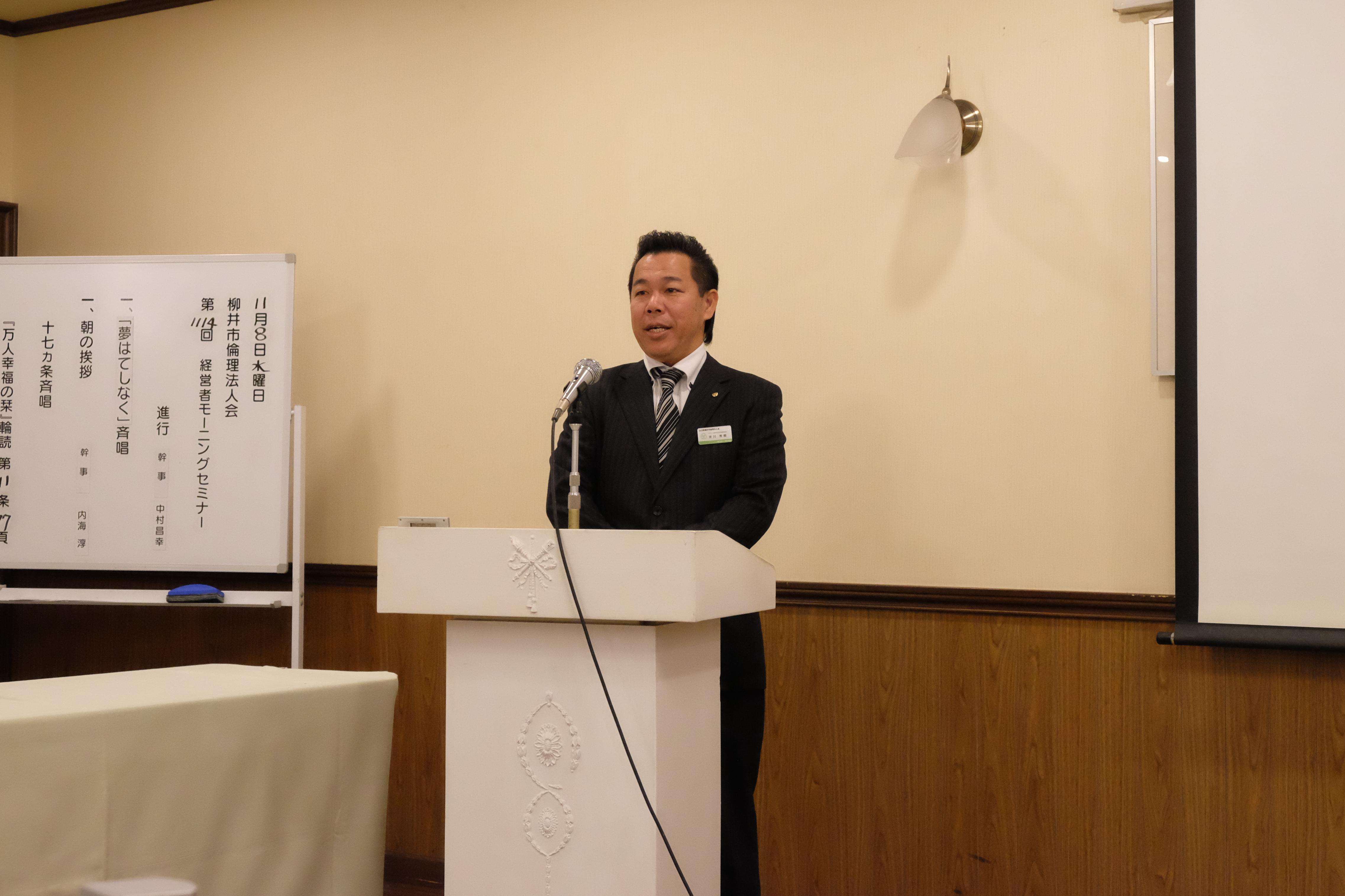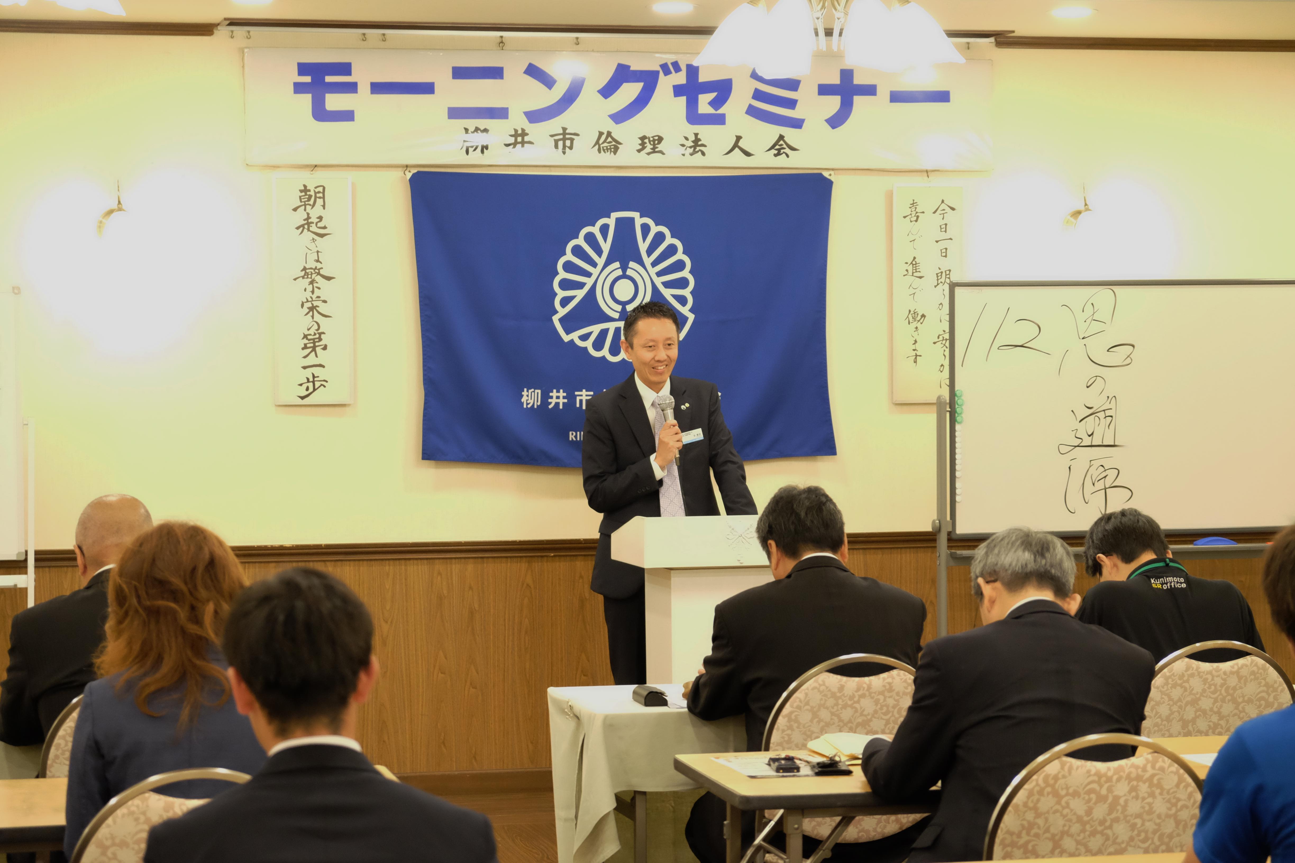 11月15日に行われた第115回柳井市倫理法人会経営者モーニングセミナーは、「これがよい ブラジル編」と題して(一社)倫理研究所 理事 藤麻 一三 氏の講話を聴きました。