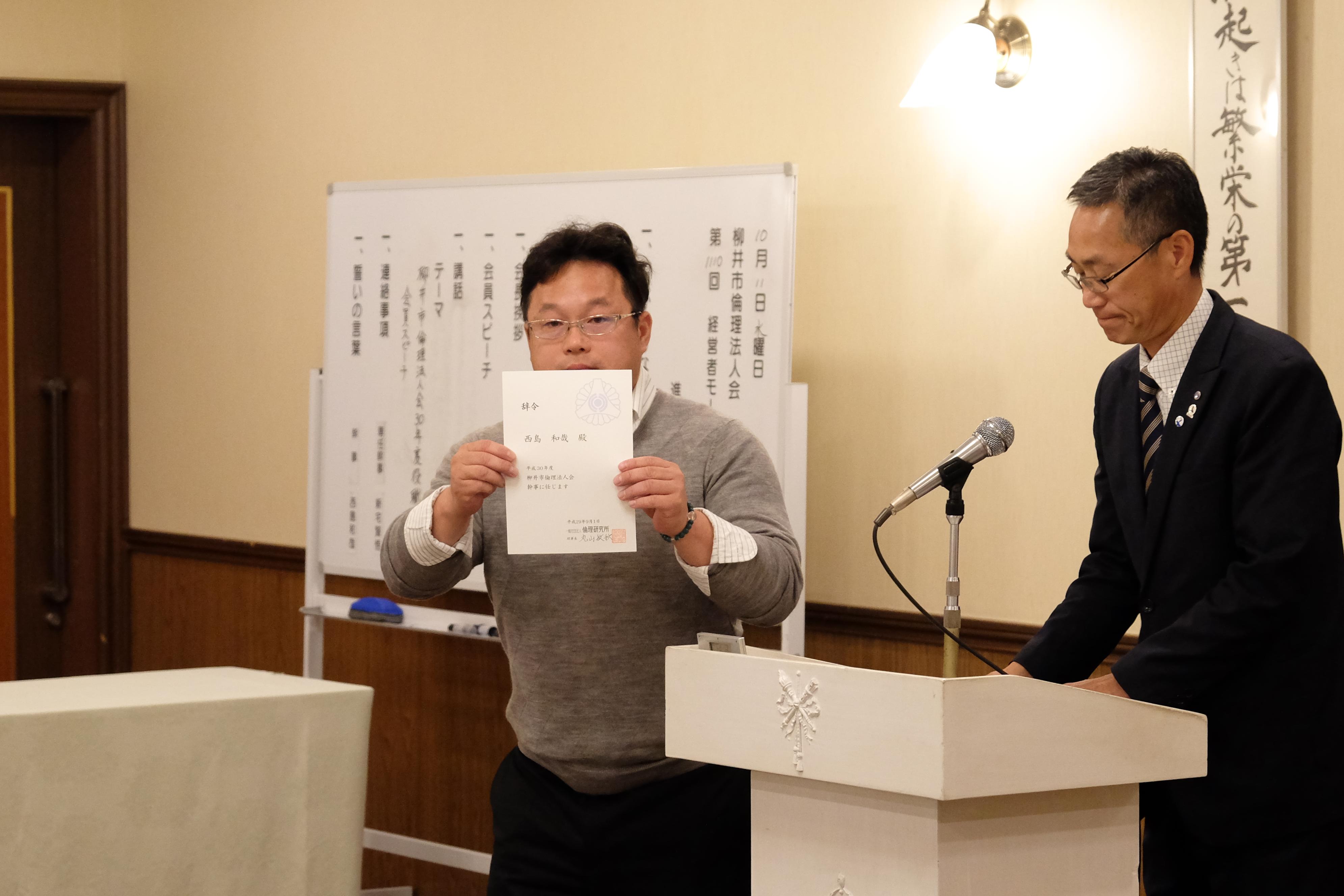 会員スピーチは、西島 和哉 研修委員長(アリス不動産)昨年度の富士研参加の感想と、今年度の富士研へのお誘いでした。とにかく富士研に『行けばわかる』との事。