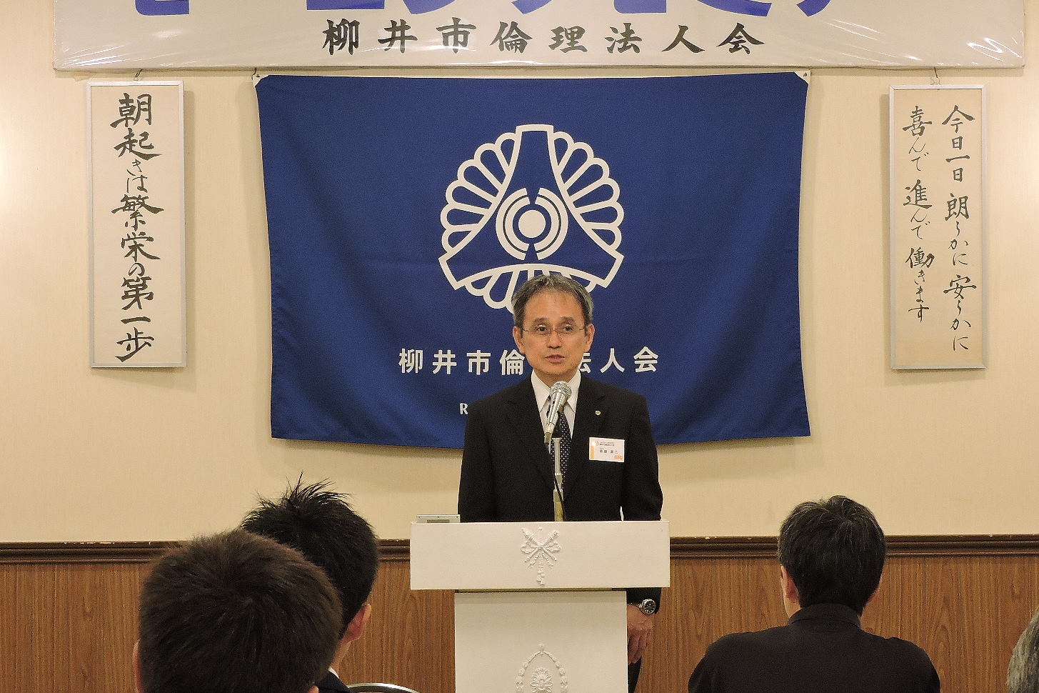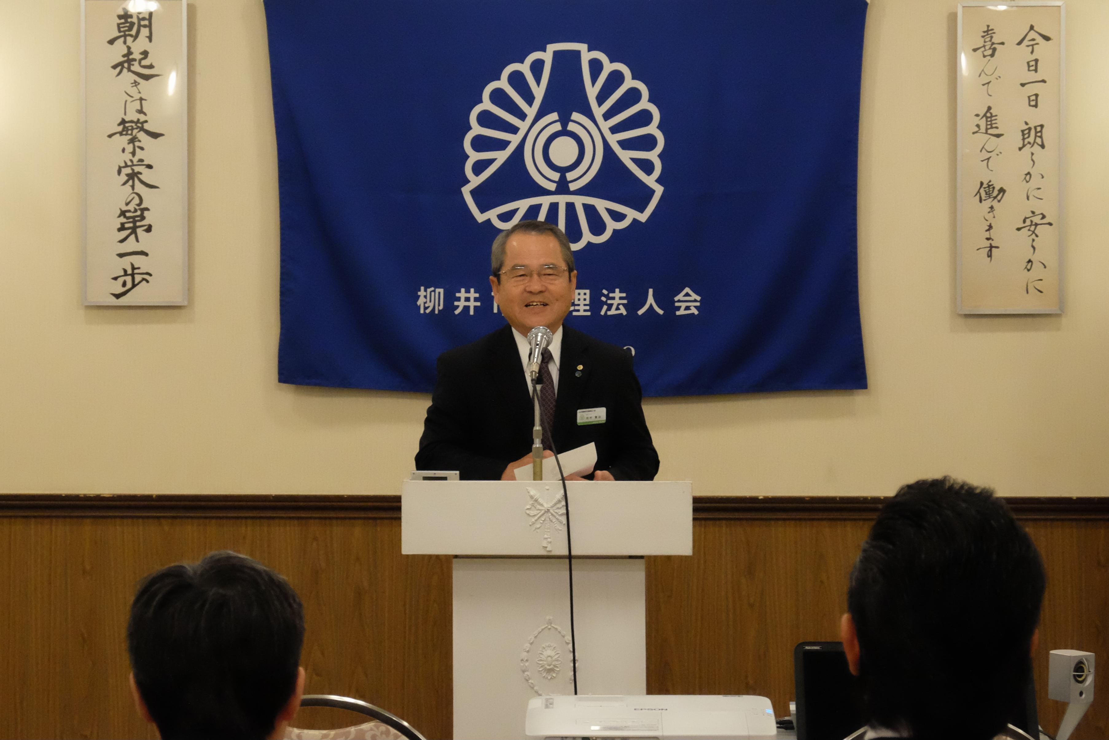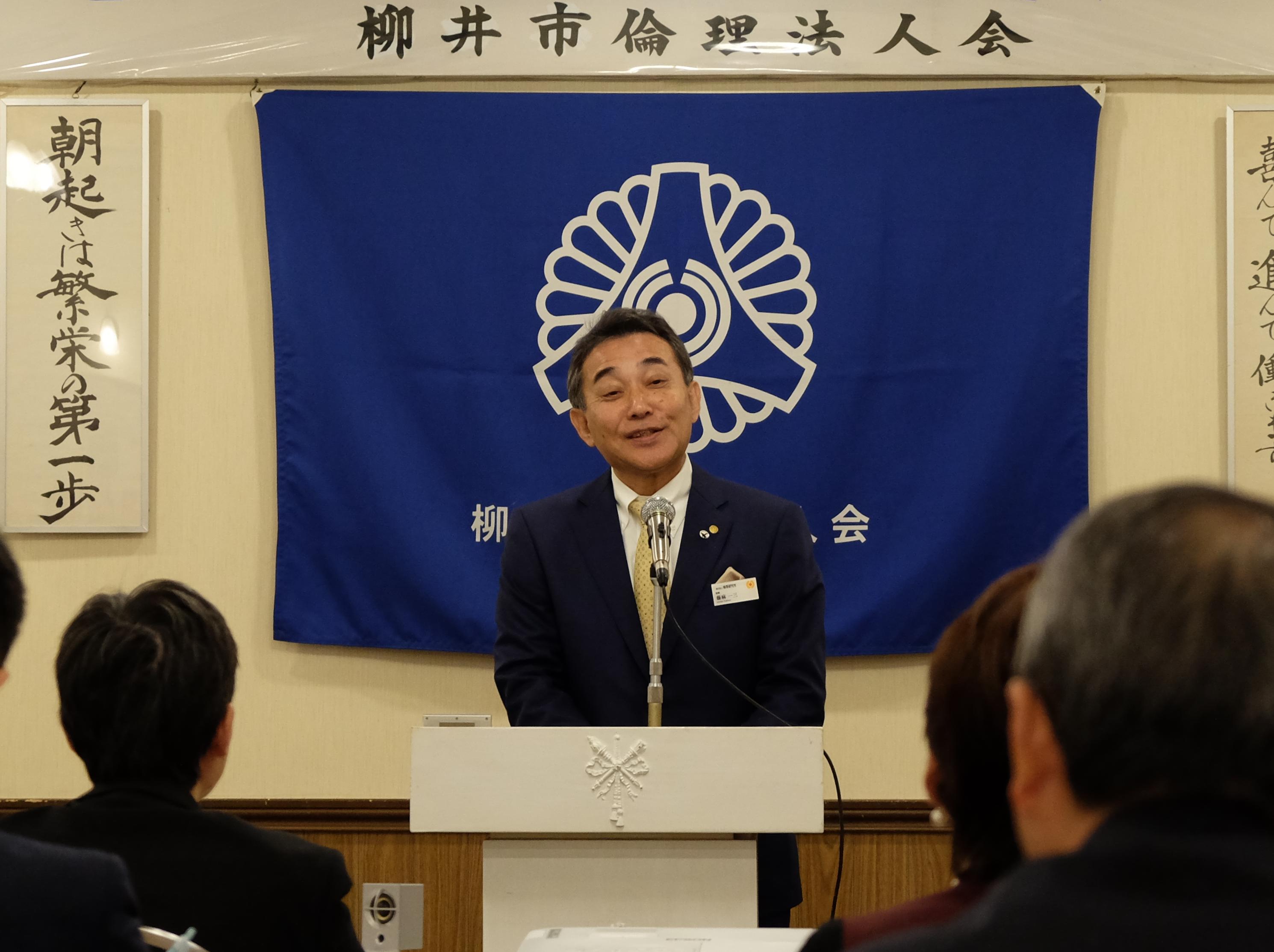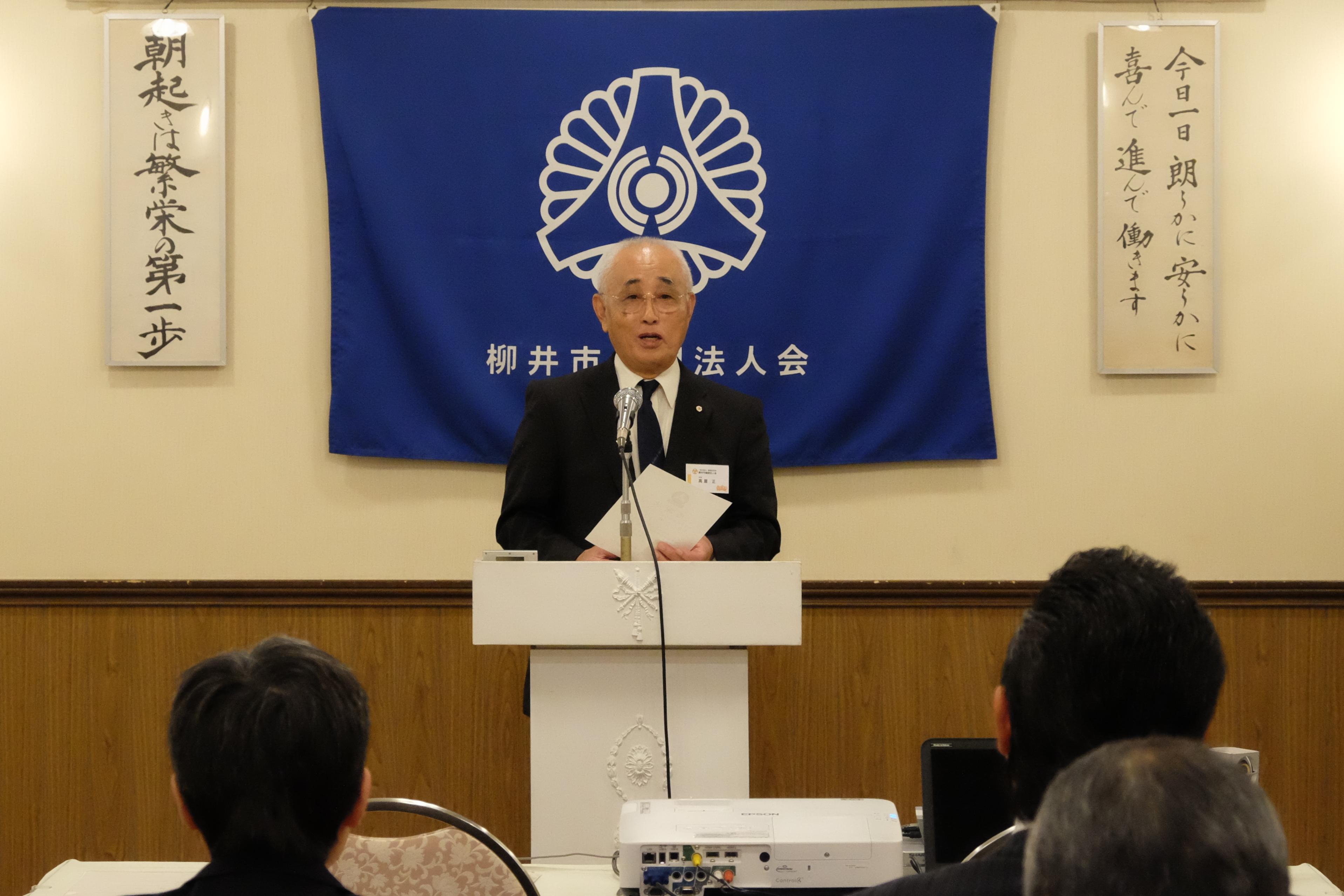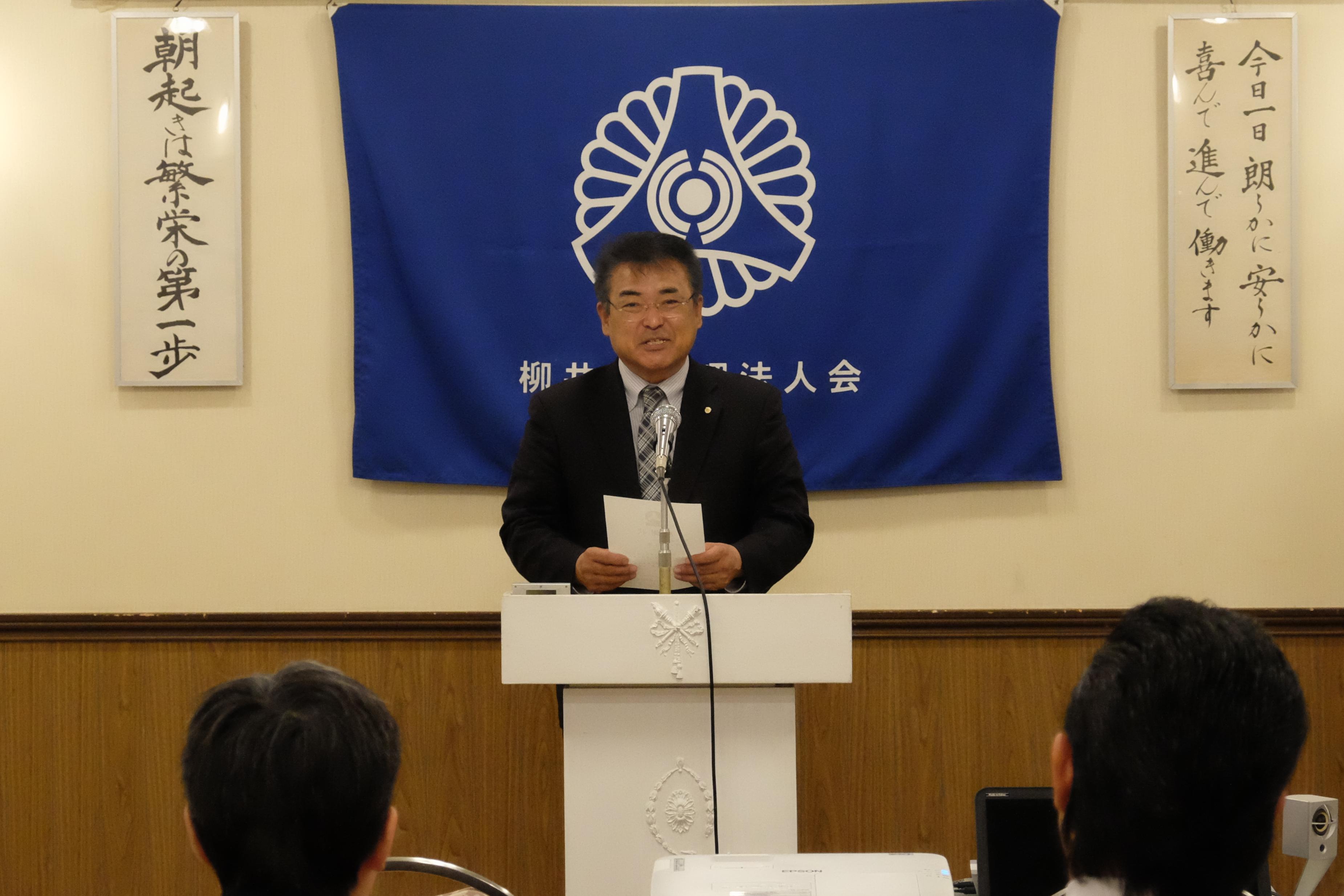 本日は石橋 貴雄 会長が出張により、斎藤 憲二 副会長((株)アデリー)が会長挨拶をされました。(株)アデリー社員、澤井 和宏 さんの初マラソン3時間切りの披露もありました。