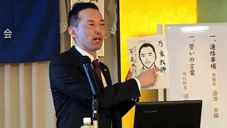会員スピーチは五代明孝幹事で、職場の教養を用いての事業所での朝礼についてでした。本社と支店、離れた職場で音声を共有して朝礼を行い、意識を高めあっているとのことです。