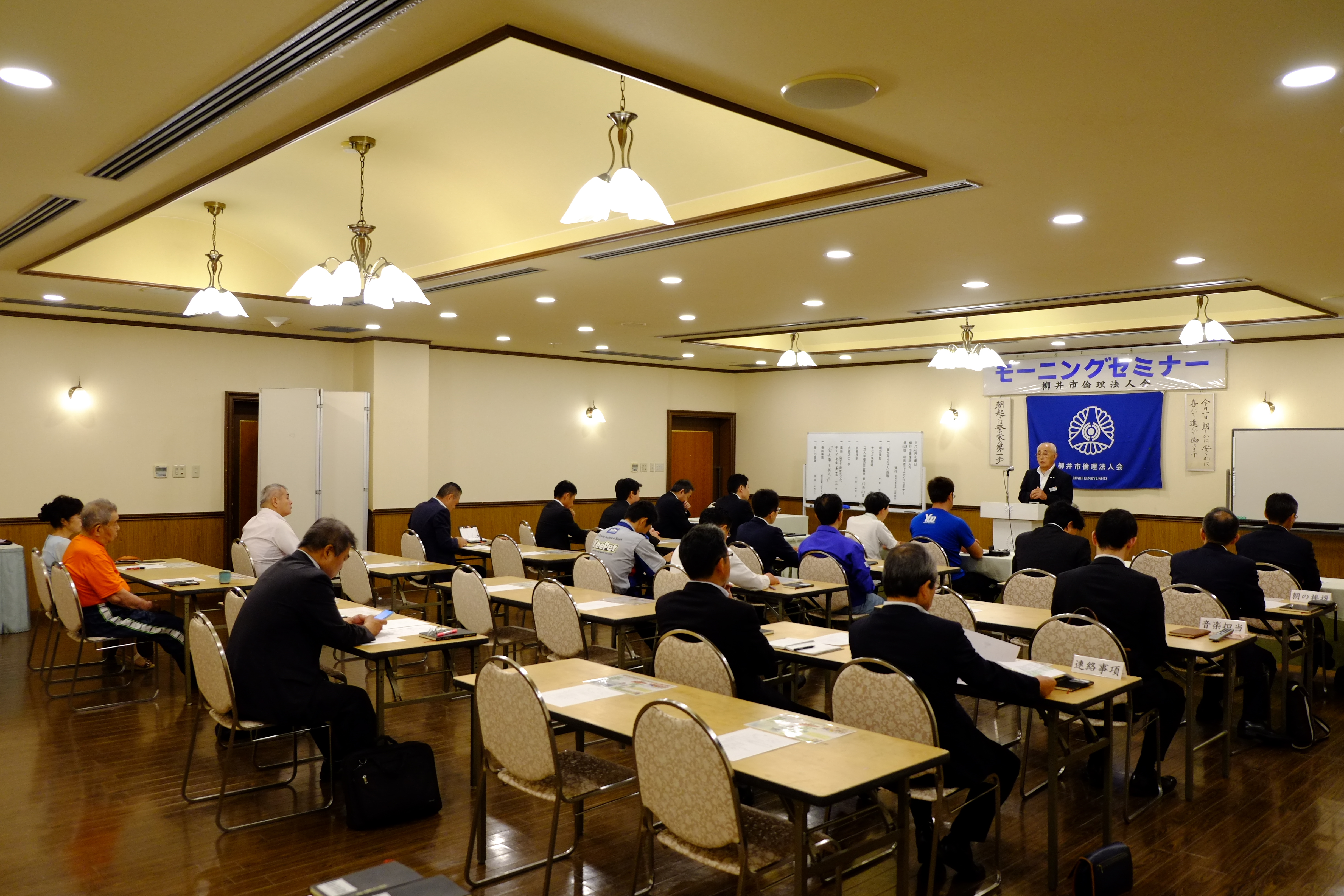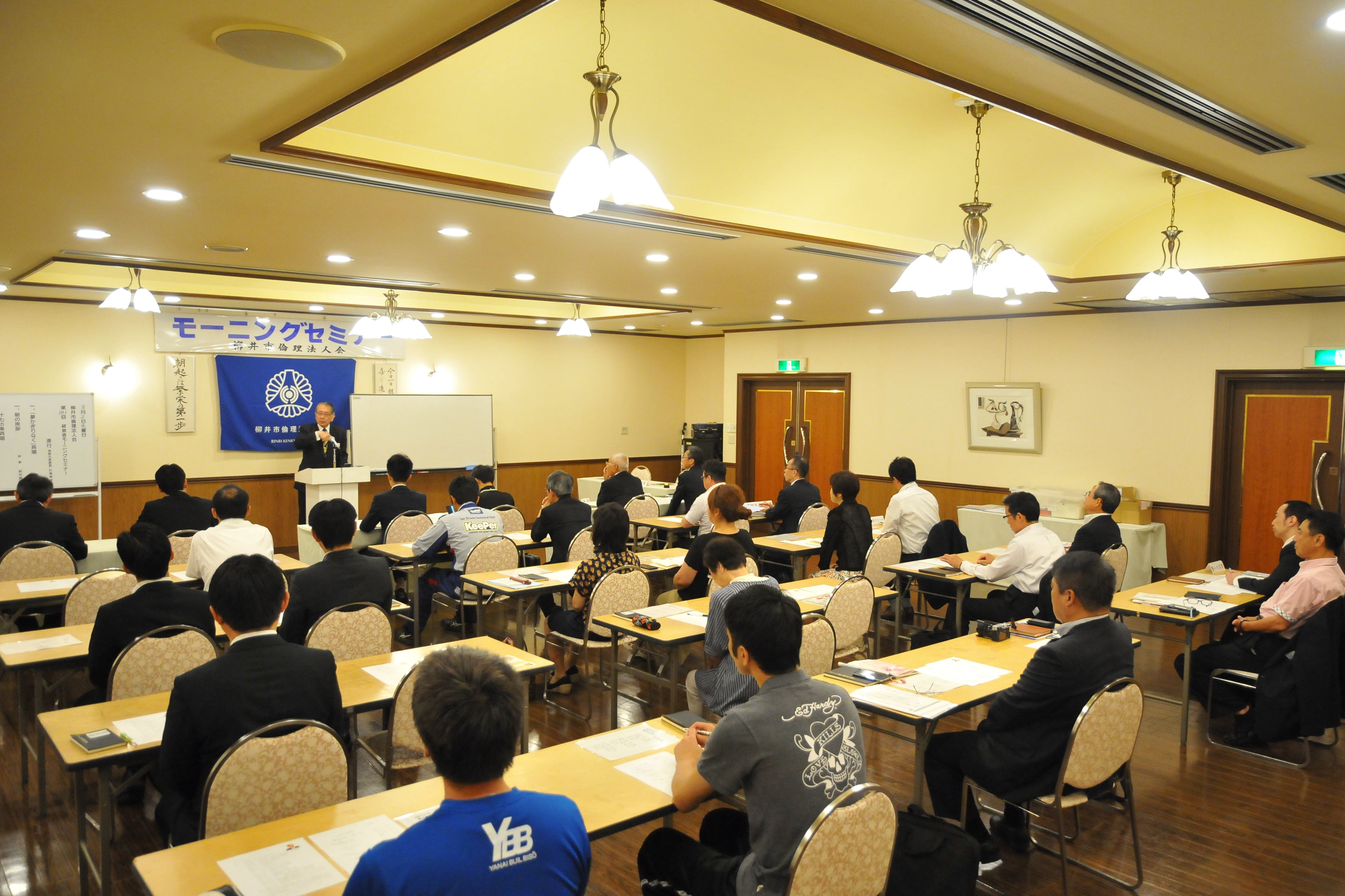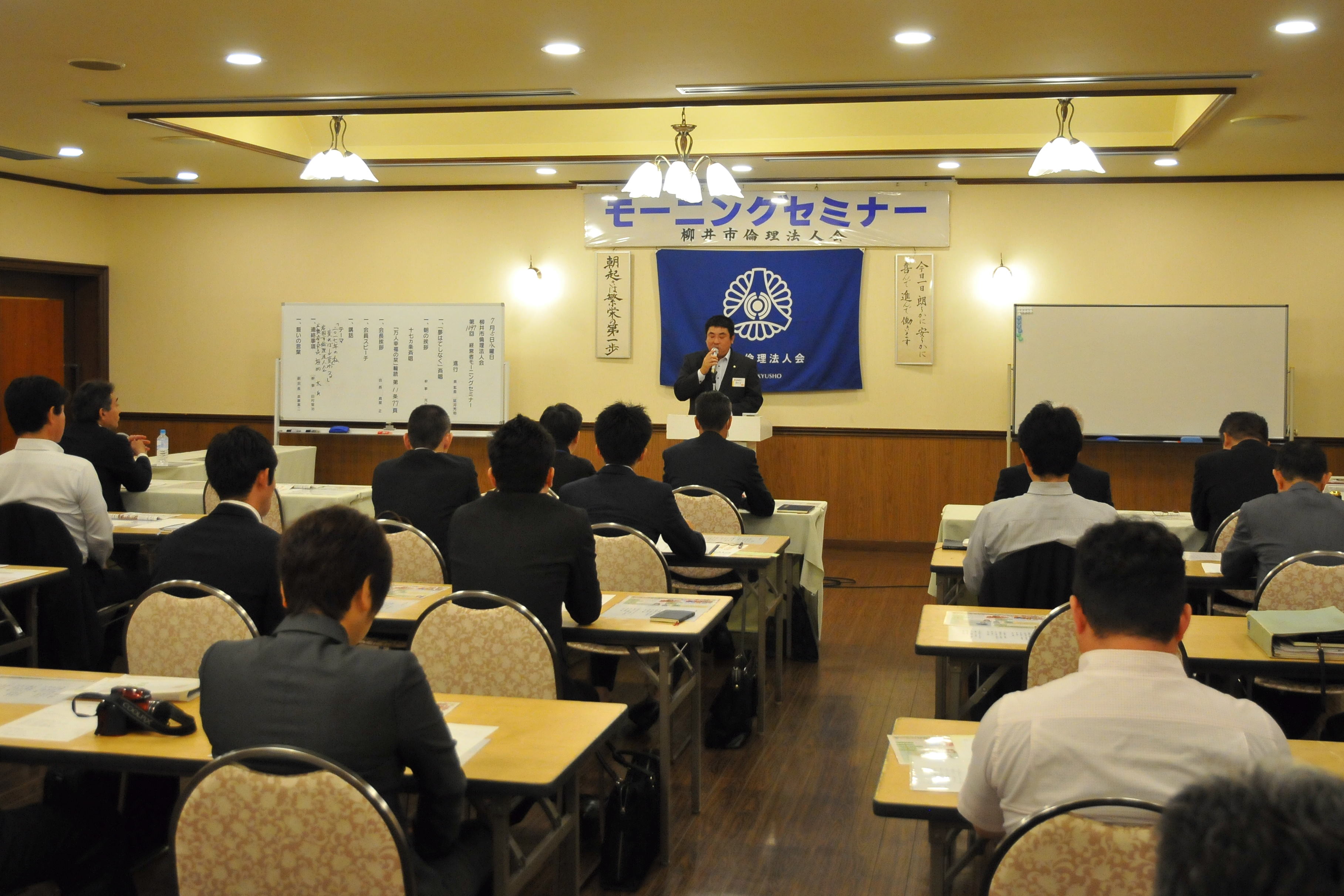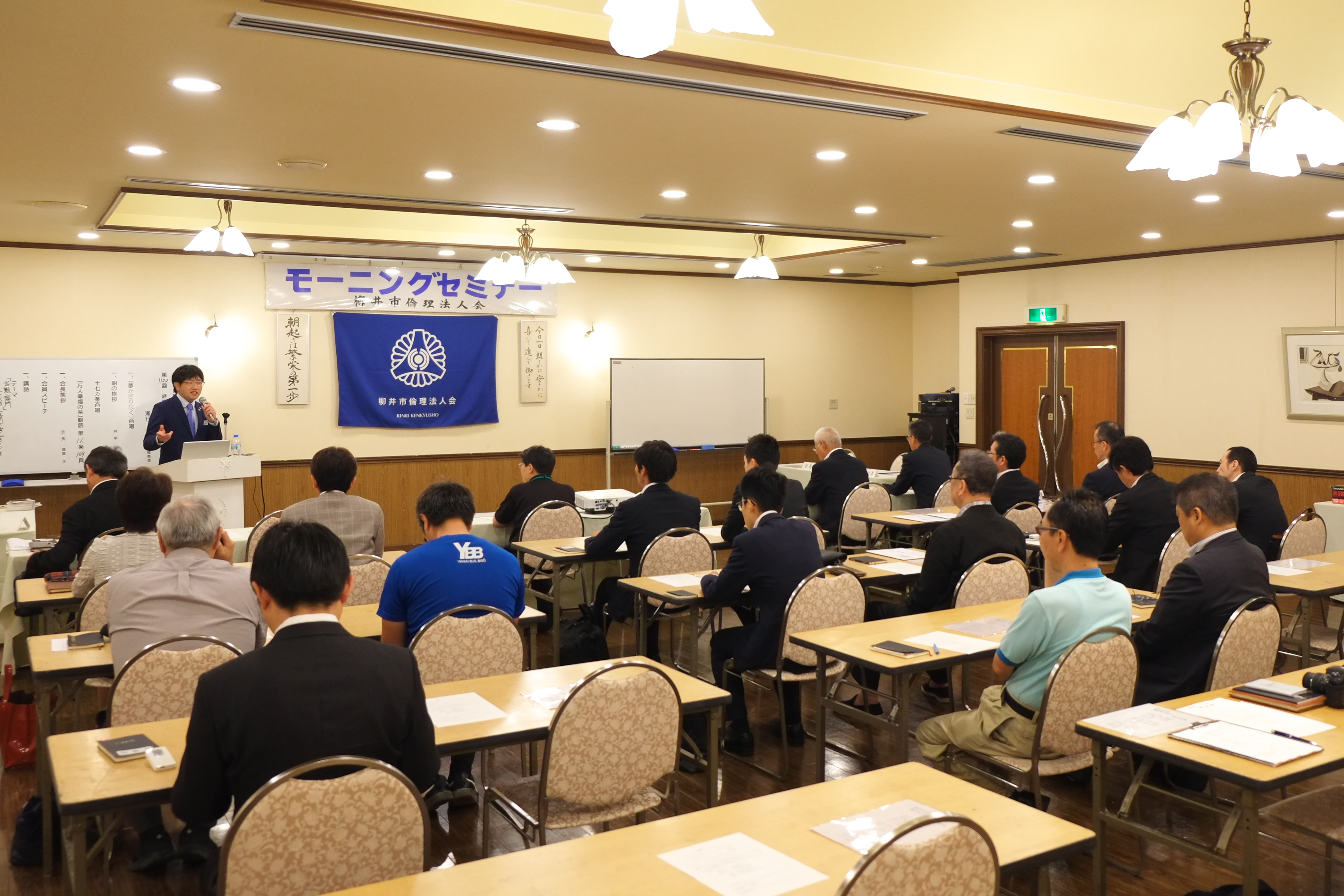 髙屋会長が講話を務めるにあたり、本日の会長挨拶は、延河芳明 山口県倫理法人会 監査が代行。モーニングセミナーは週の真ん中に自分を見つめなおす大切な時間とお話しいただきました。