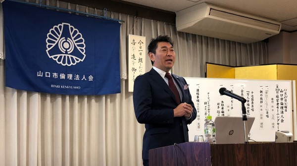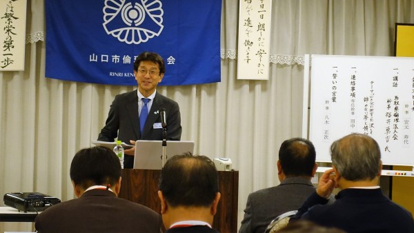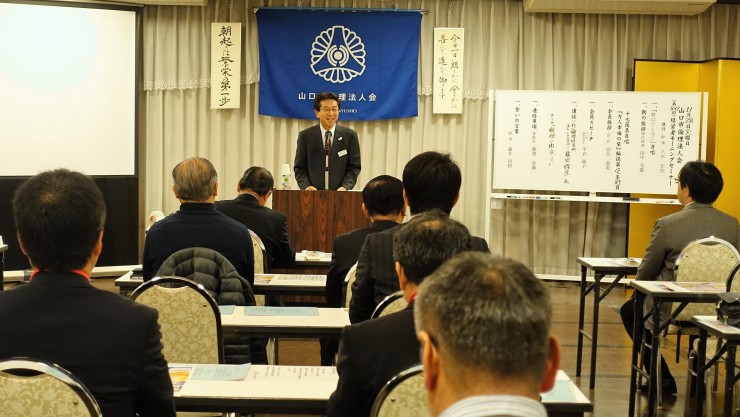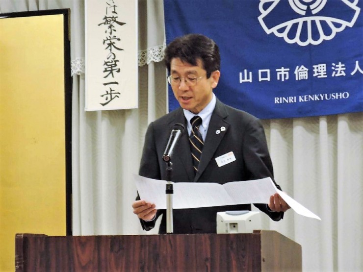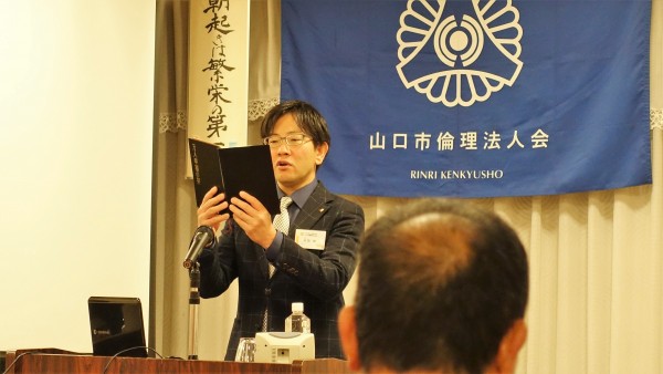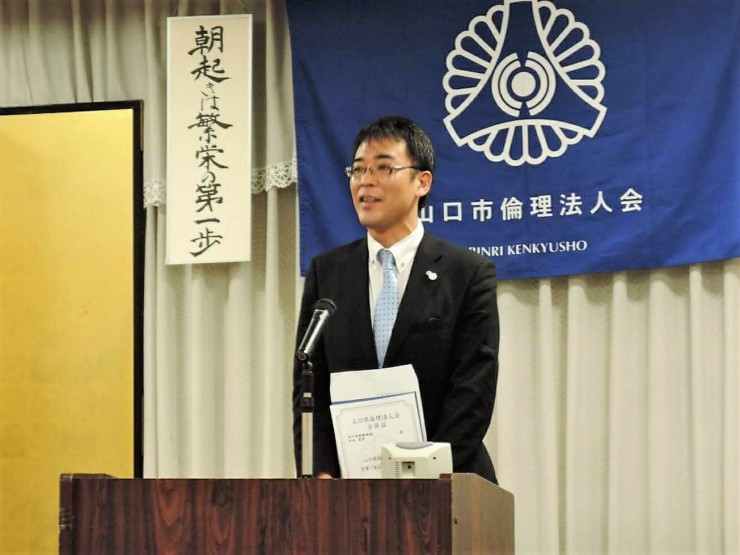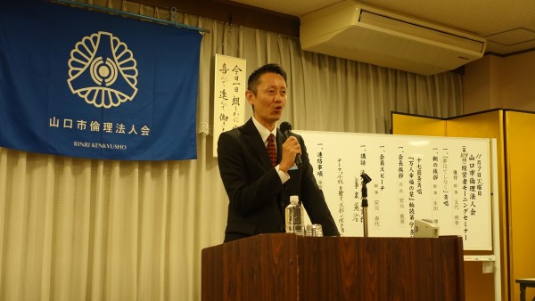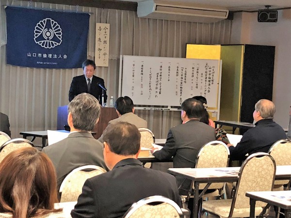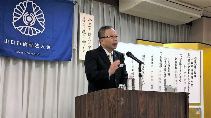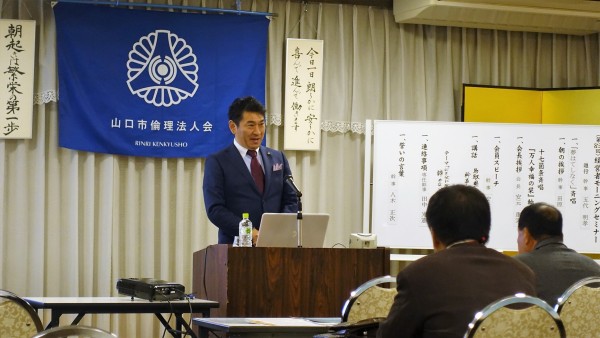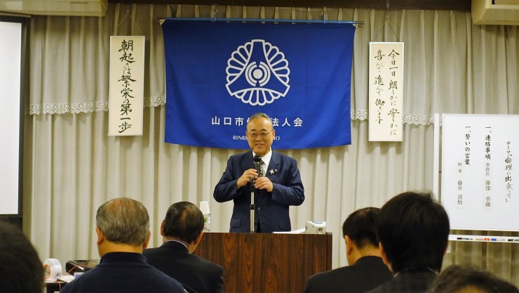 山口市・山口中央倫理法人会の合同企画モーニングセミナーとして鳥取県倫理法人会から福井勇吉幹事をお招きしての開催となりました。